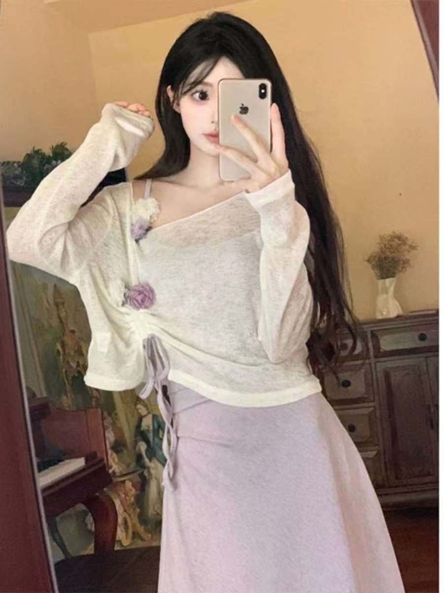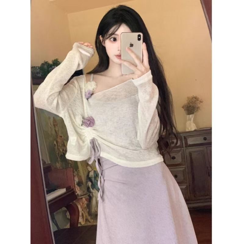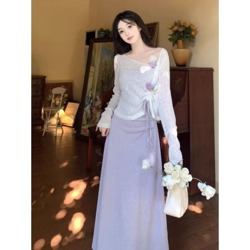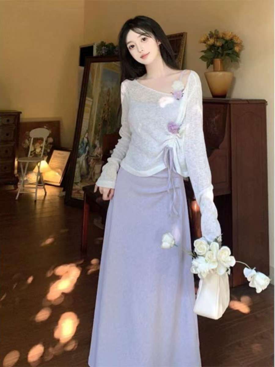 2025 春夏甘くて爽やかなフレンチカレッジ無地スカートスーツ紫サスペンダー薄手ブラウス mm 甘辛リリス