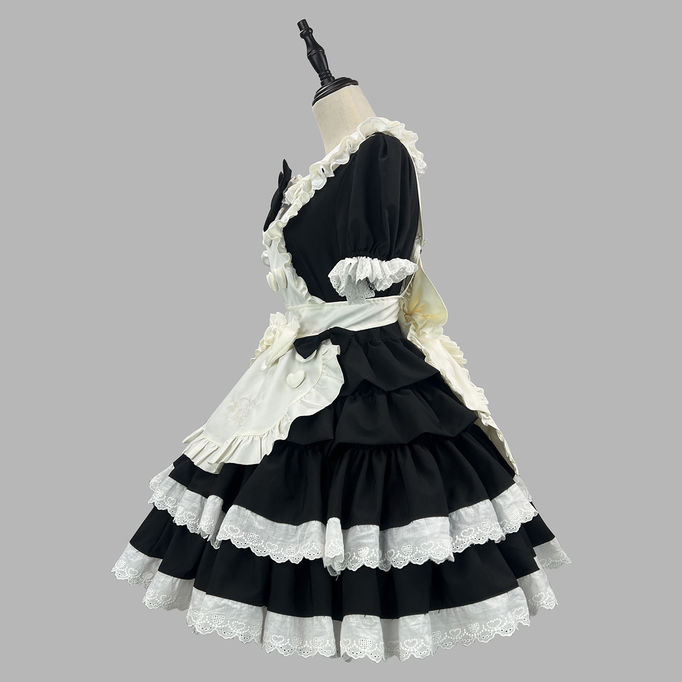 连衣裙+围裙+领口蝴蝶结+后背大蝴蝶结+头饰