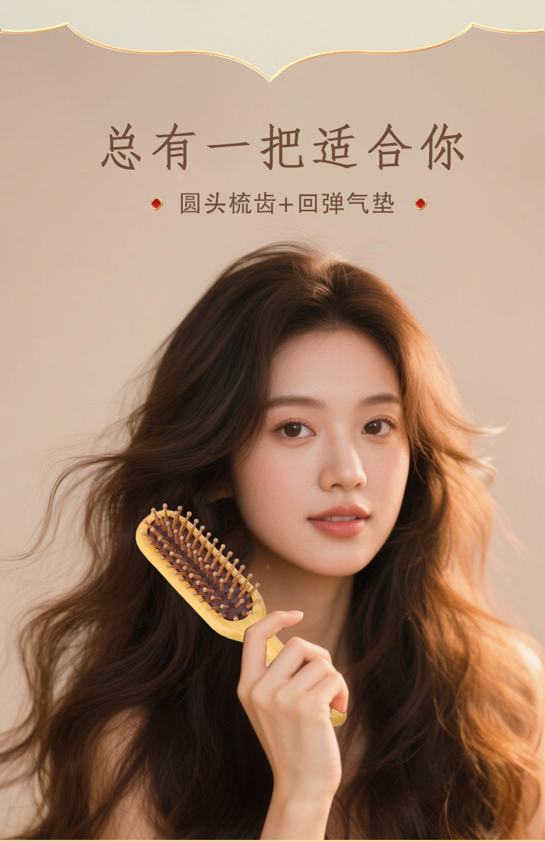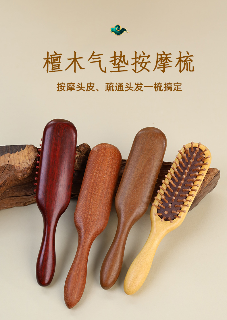 檀木气垫梳经络按摩头部梳气囊实木蓬松发根简约精致女士随身旅行