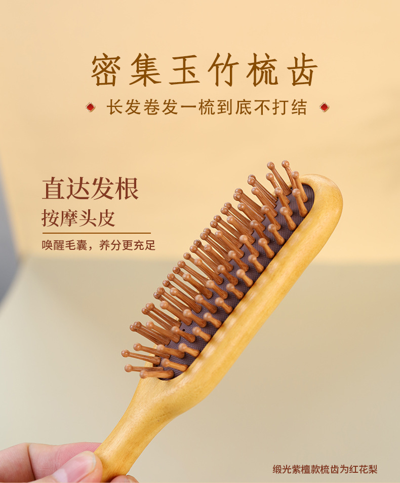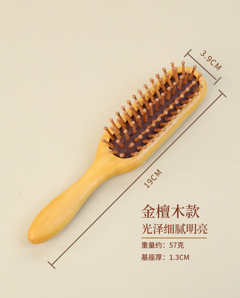 金白檀エアクッションコーム、経絡マッサージコーム、エアバッグコーム、無垢材ふわふわ毛根、シンプルな女性用トラベルコーム