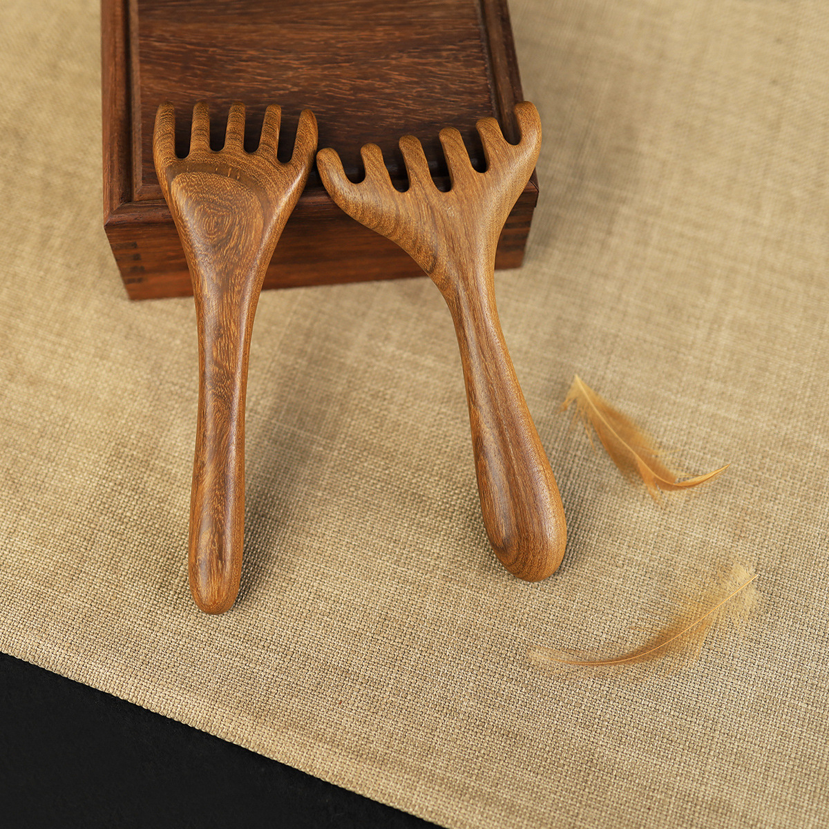 白檀製の猫と熊の形をしたマッサージ用経絡コーム、長髪用、全身用、頭皮マッサージ用、粗歯コーム、無垢材、無塗装