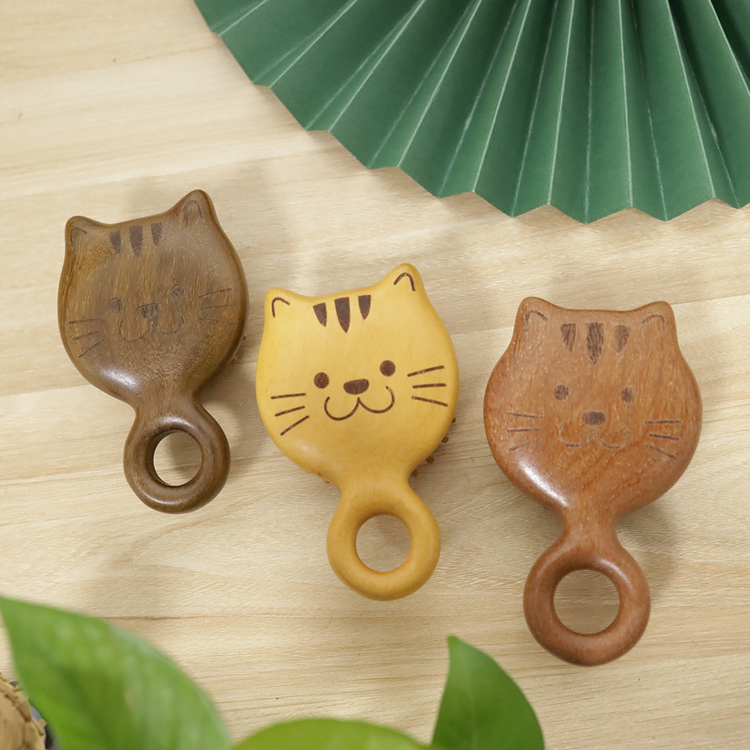 铁苏木小猫指环气垫梳可爱猫咪气垫梳按摩穴位长短发便携实木无漆