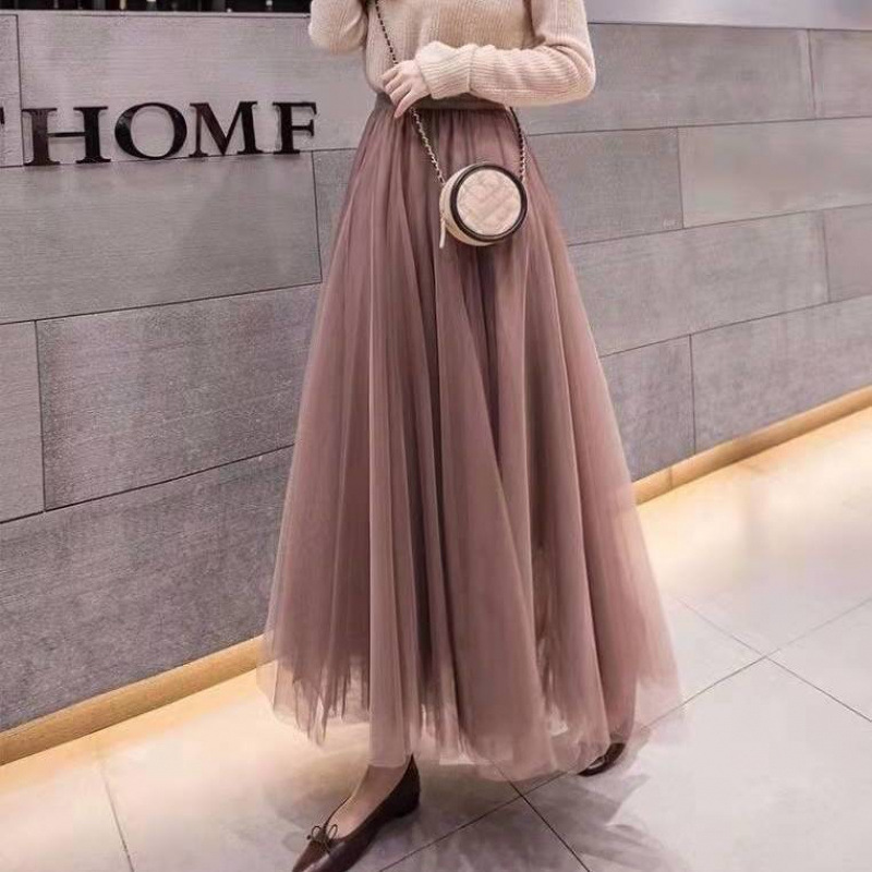 フレンチレーススカート女性のための 2025 春夏新作 A ラインミドル丈スカート大きな裾メッシュ中空妖精プリーツスカート
