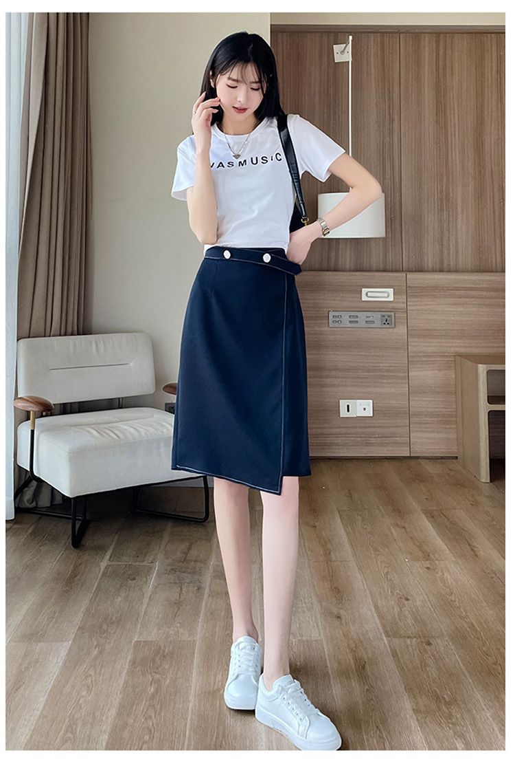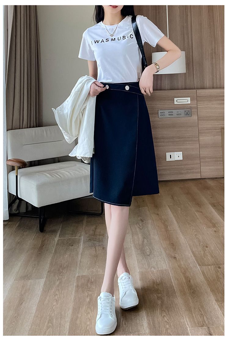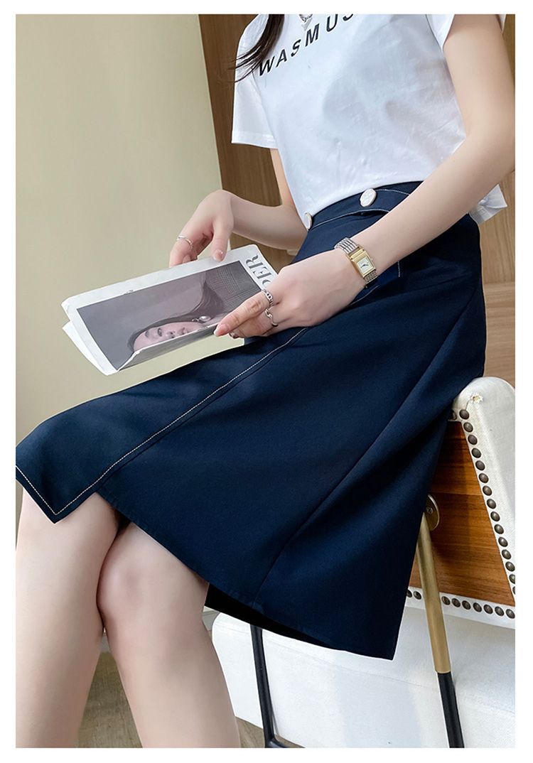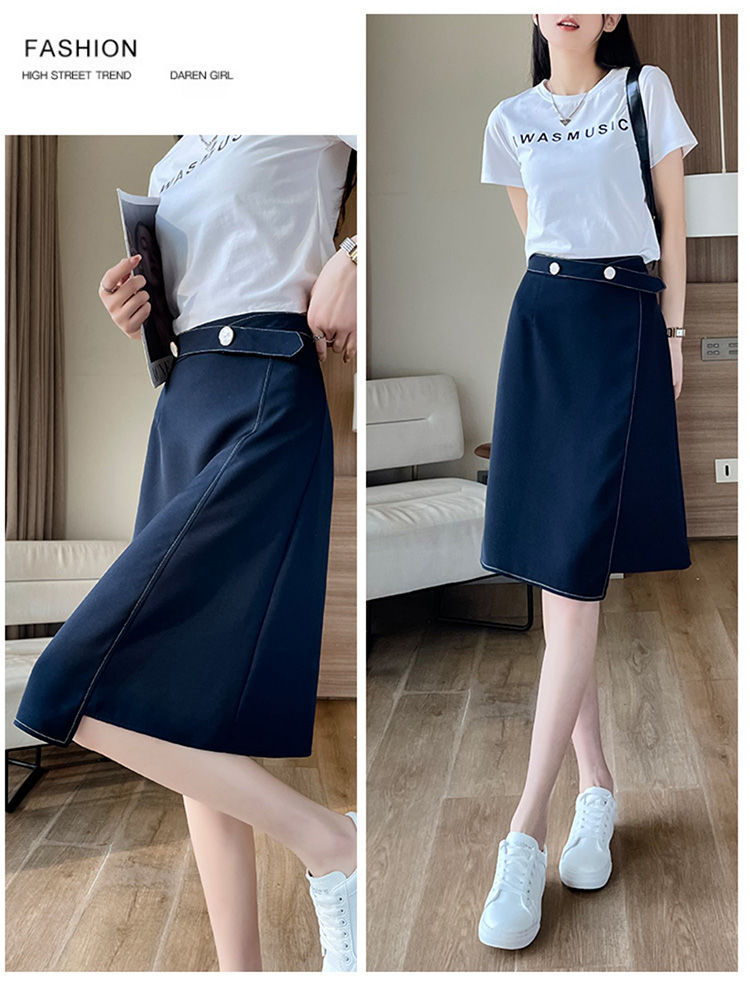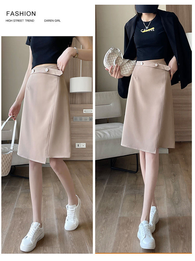 2025年夏の女性向けデザインミドル丈スカート、新しい韓国風クローズドスーツAラインスカート、スリムニッチスカート