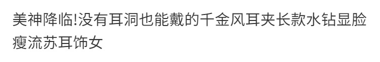 美神降临!没有耳洞也能戴的千金风耳夹长款水钻显脸瘦流苏耳饰女