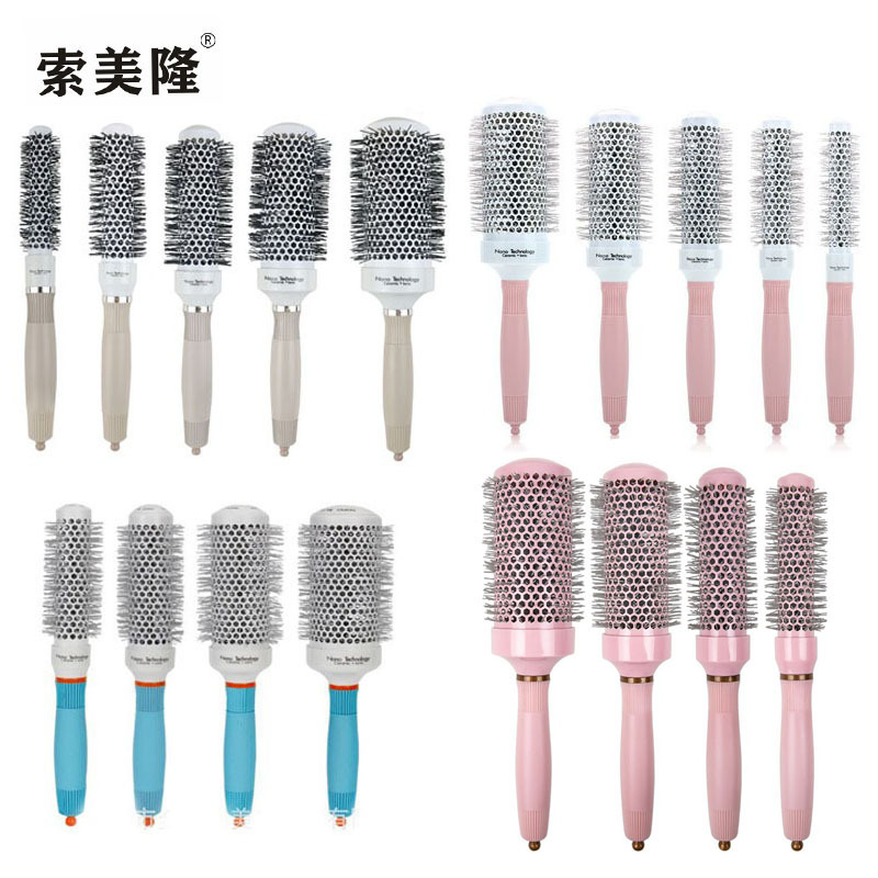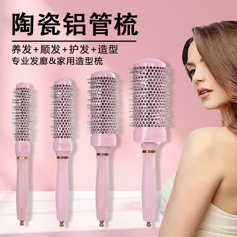 クロスボーダー起爆ピンクロール巻き髪櫛セラミックアルミチューブ櫛耐高温美容櫛ヘアカール形櫛