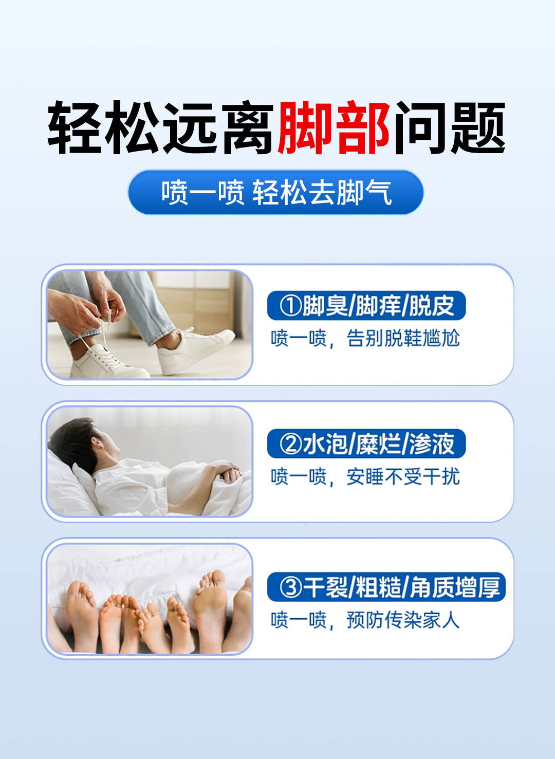 轻松除脚气喷剂汗脚丫去异味抑菌液喷剂臭脚止痒足部护理脱皮喷雾