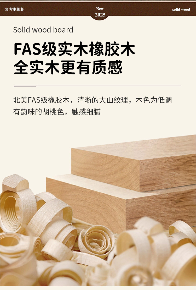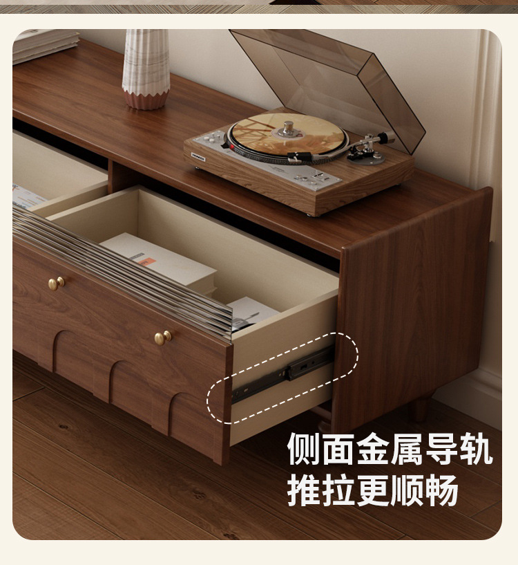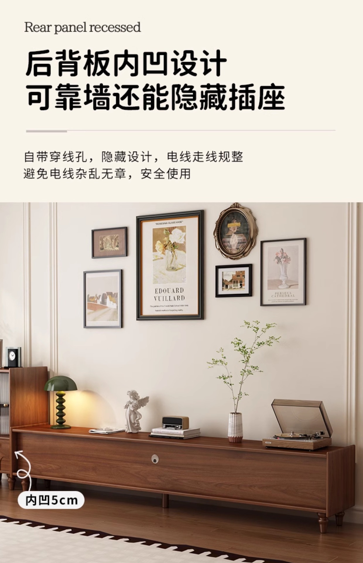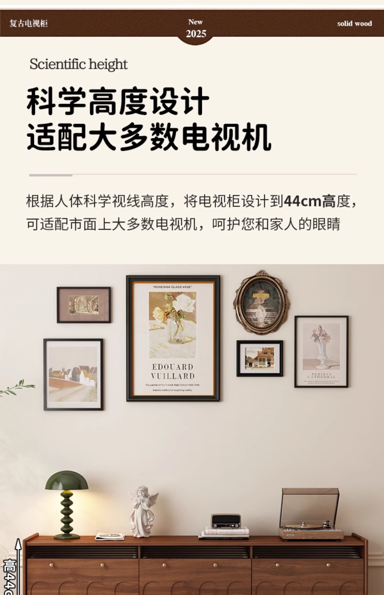 全实木电视柜中古风客厅家用2025新款收纳柜一体落地复古储物边柜