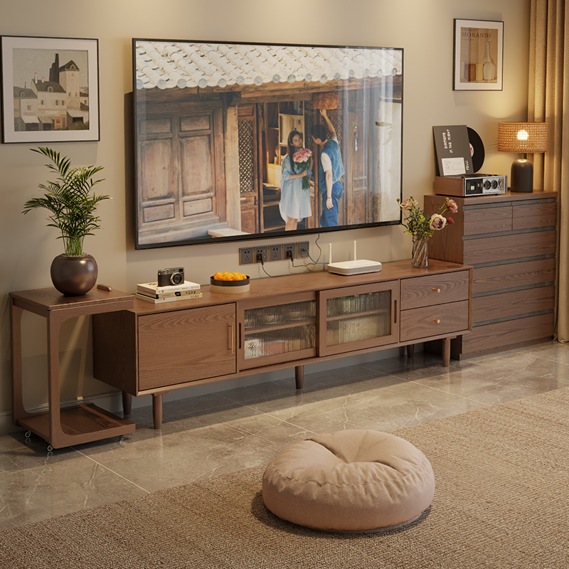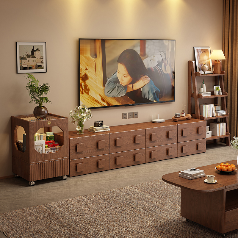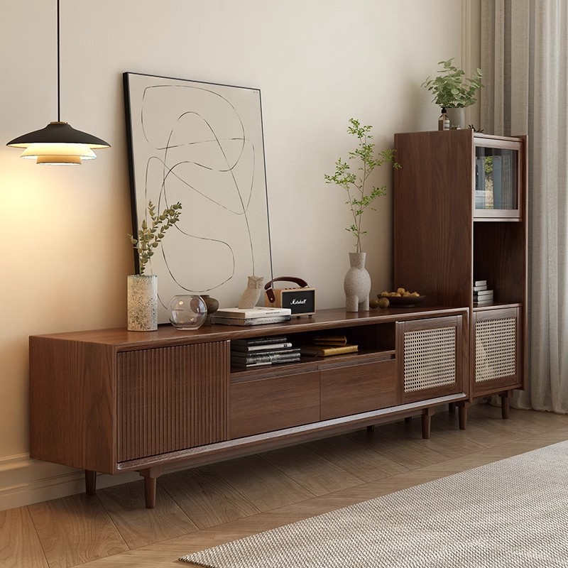 家用中古风电视柜新款客厅收纳储物柜一体小户型落地茶几边柜组合