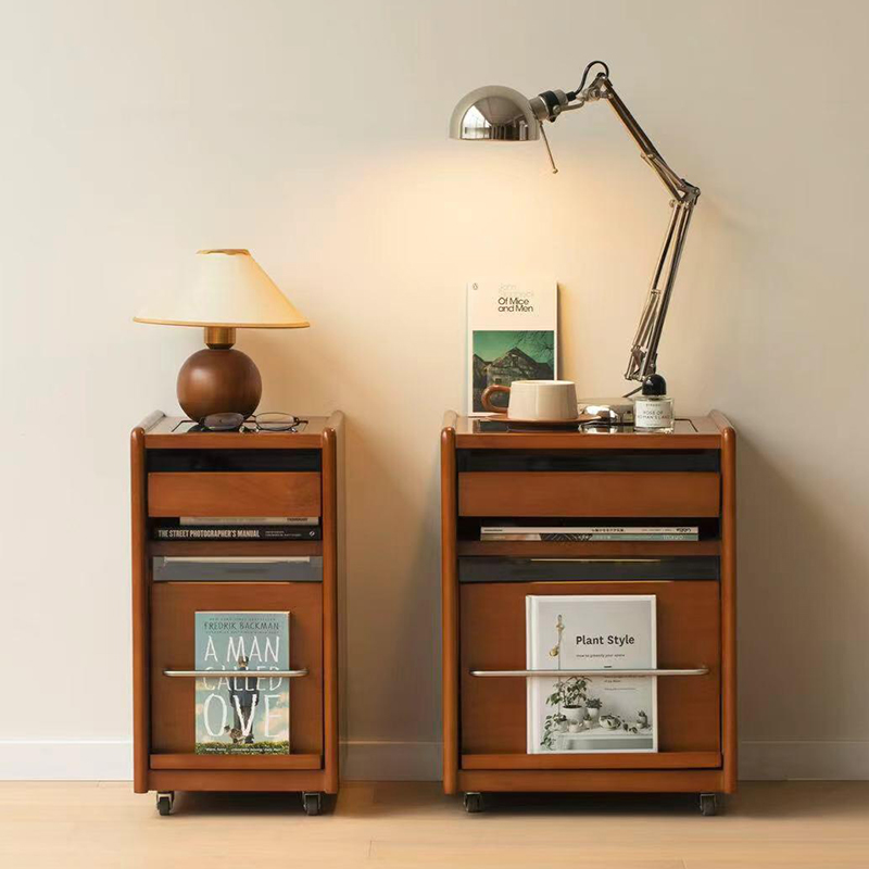 ラバーウッド無垢材ベッドサイドテーブルレトロスタイル寝室収納キャビネットモバイル収納小型中古超狭いベッドサイドテーブル