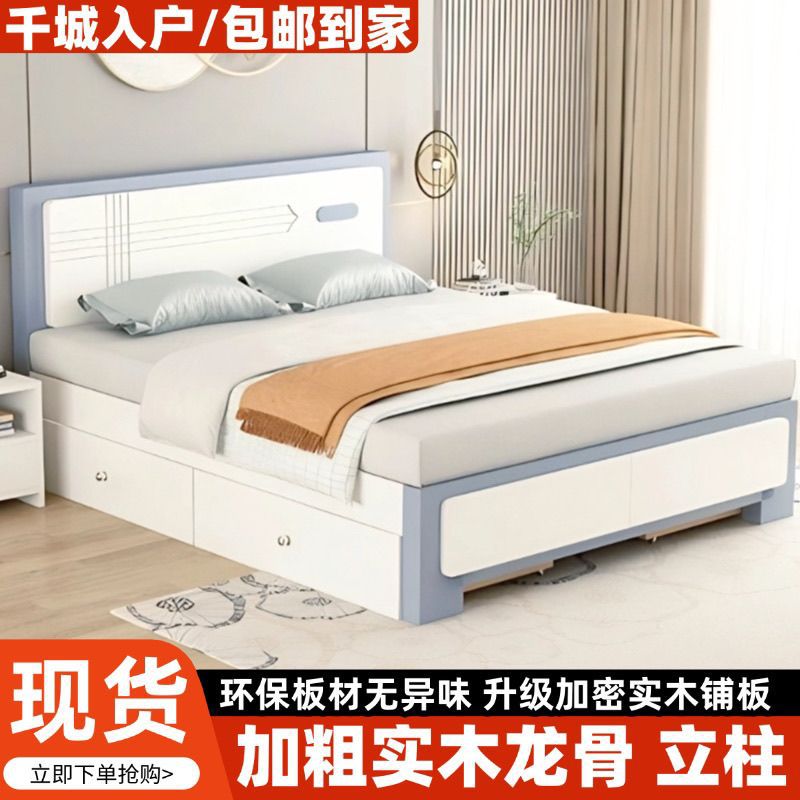 モダンなミニマリスト 1.5 メートル家庭用無垢材ベッドマスターベッドルームダブルベッド 1.8m レンタルルーム収納ベッド小さなアパート 1.2m