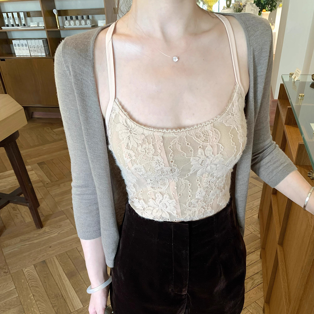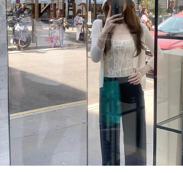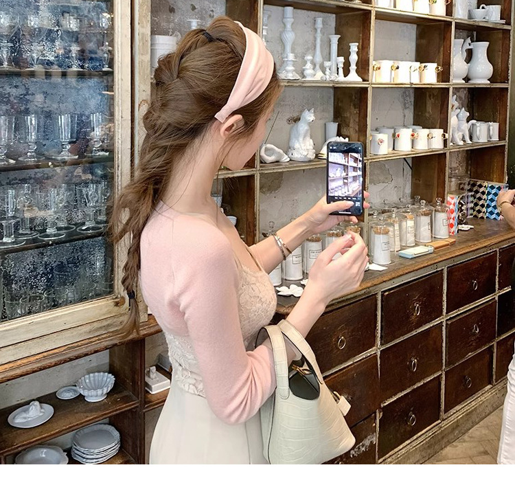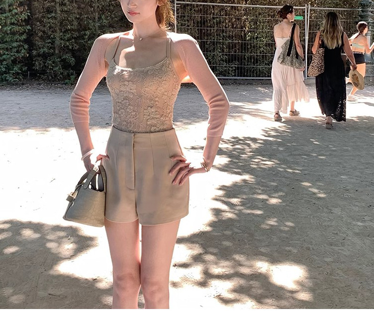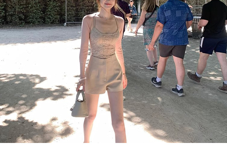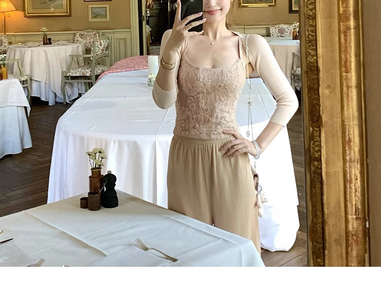 在庫あり ニットシリーズ_輸入糸使用の細かい光沢カーディガン/無地カーディガンとキャミソールのツーピースセット、おしゃれで上品