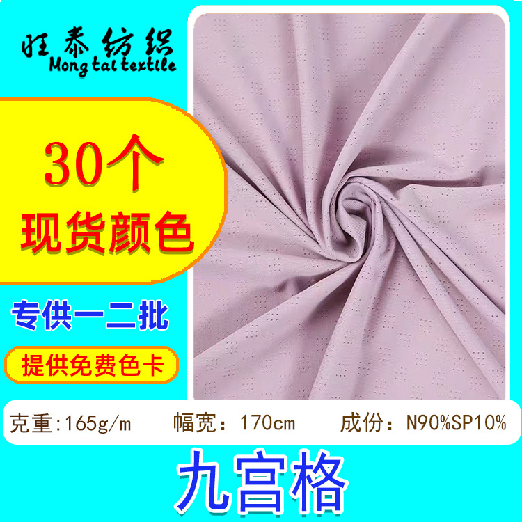 メーカー現物氷糸九宮格通気点ナイロン合糸生地氷糸速乾運動レジャー高弾男装