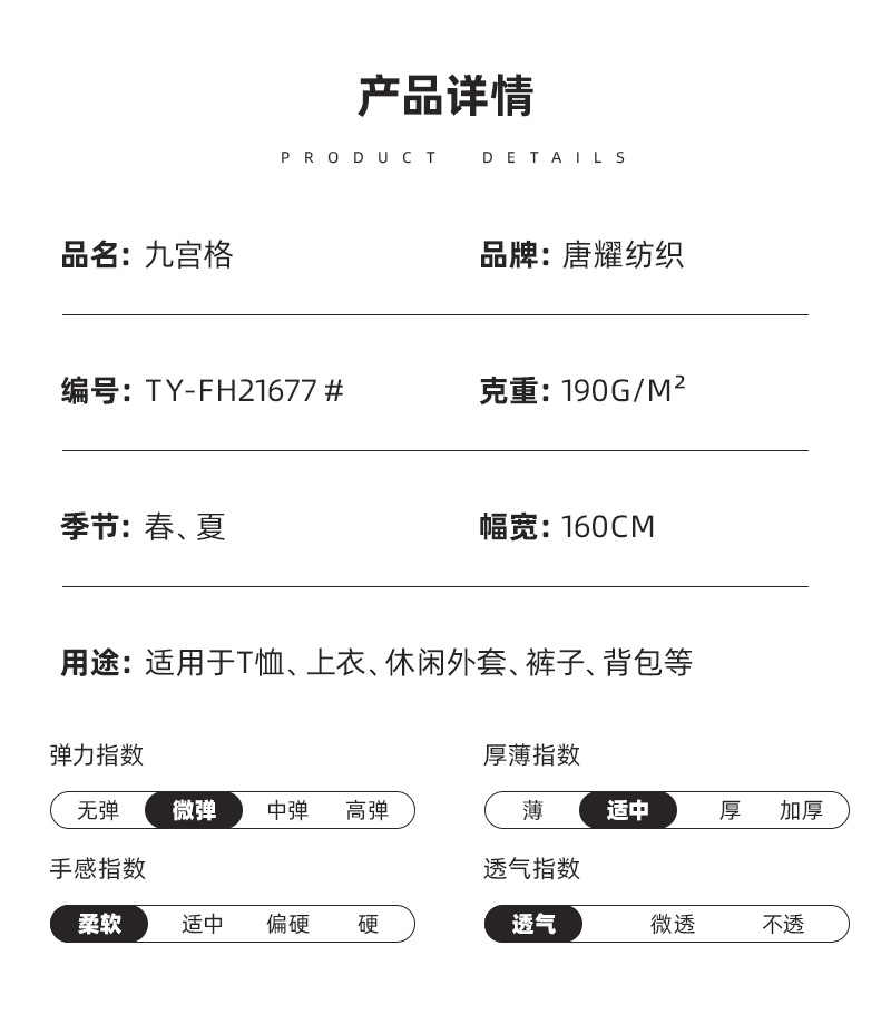 165g九宫格提花面料 锦氨高弹提花面料 时尚弹力T恤布料
