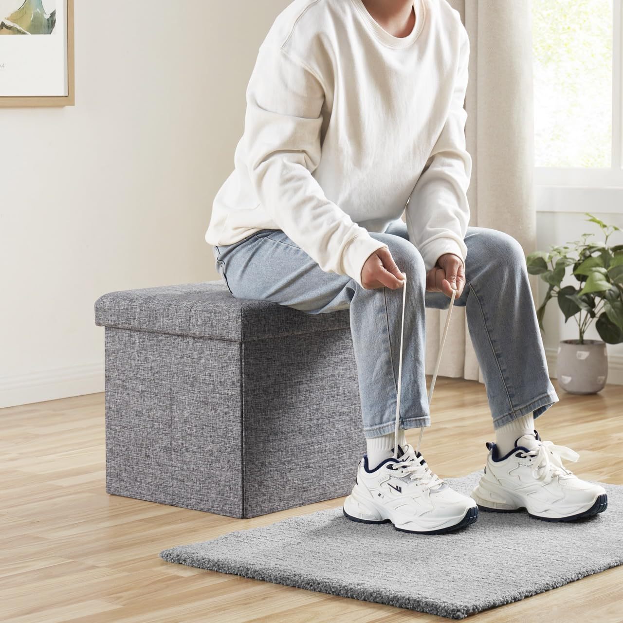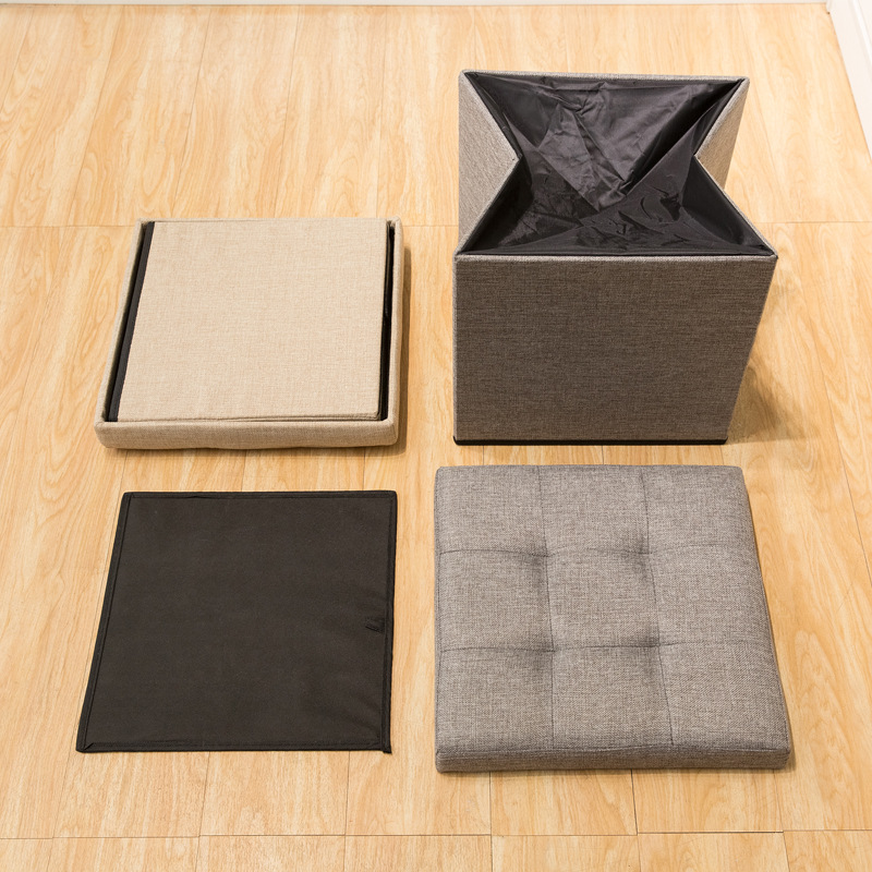 メーカー卸売綿とリネンの収納スツール多機能折りたたみ布製収納スツールは、収納スツールの収納ボックスに座ることができます