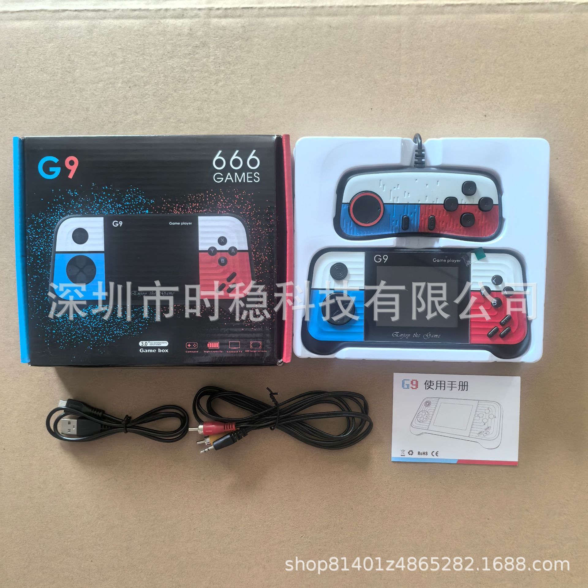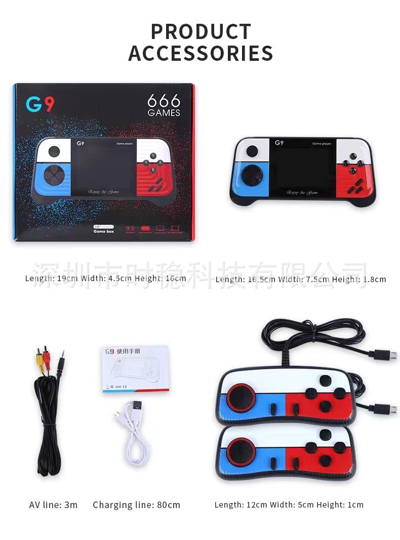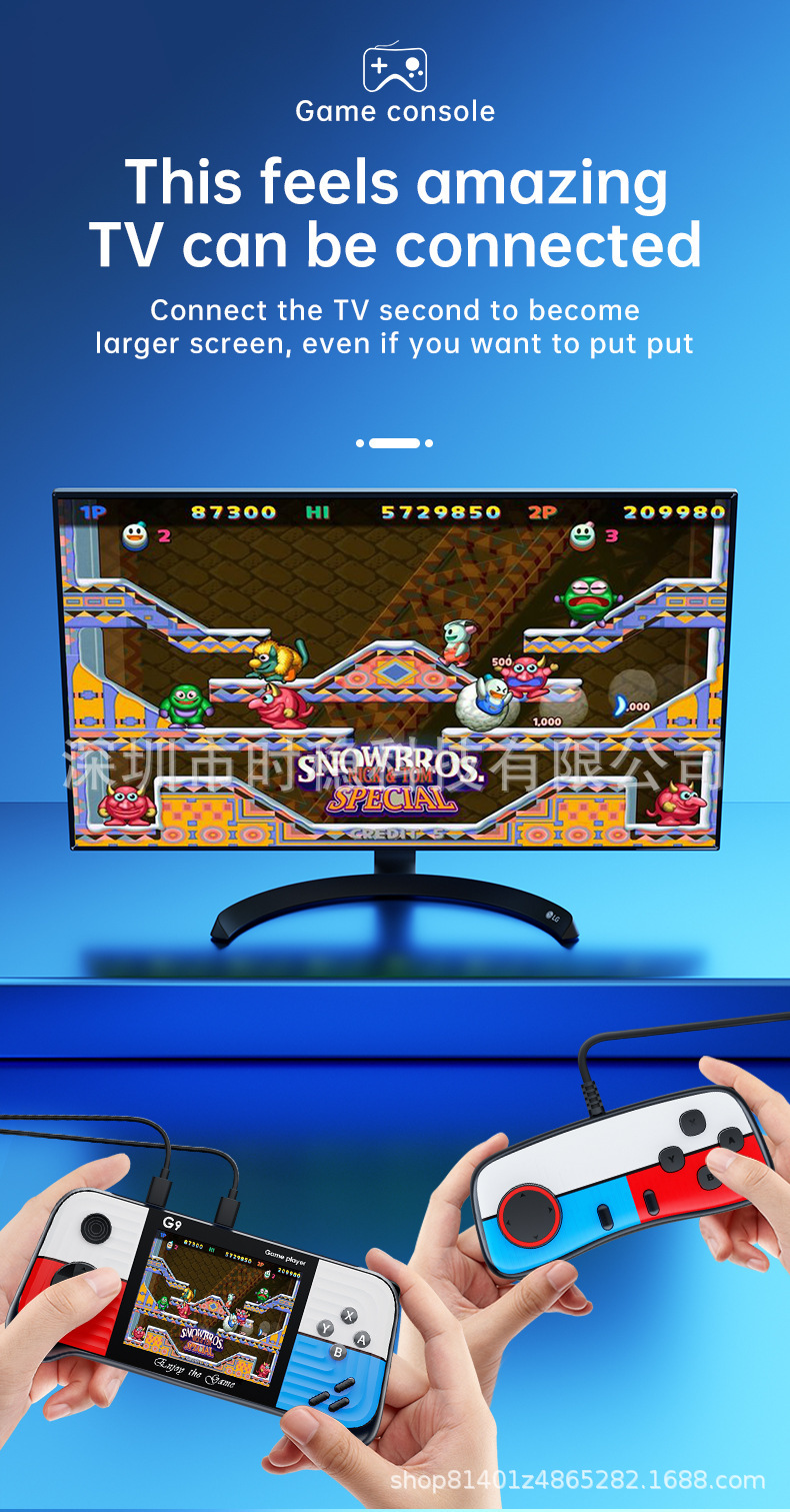 功能:支持AV三色输出电视投屏(标清),支持外接两个手柄双人使用