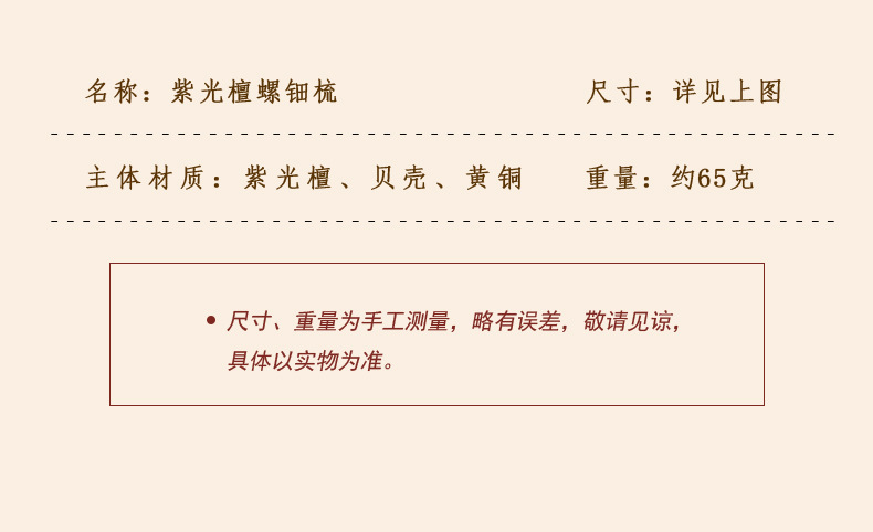 货号 紫光檀螺钿梳子