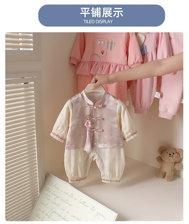 1歳のベビージャンプスーツ、新しい中国風の春と秋の長袖唐スーツ、満月百日服、中国風のハイハイ服