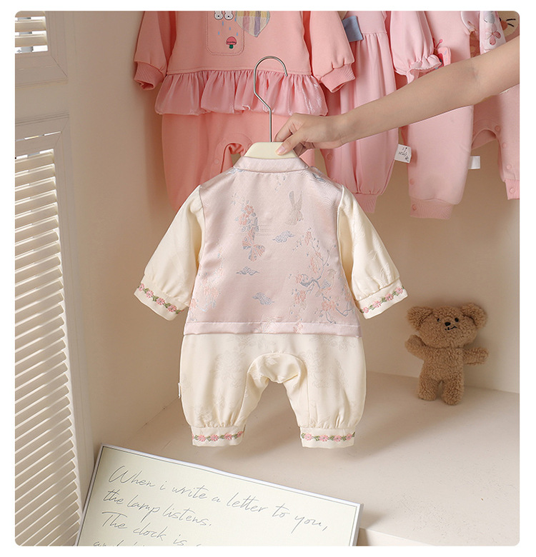 周岁婴儿国风连体衣春秋装女宝宝碎花假两件外出服婴幼儿唐装礼服