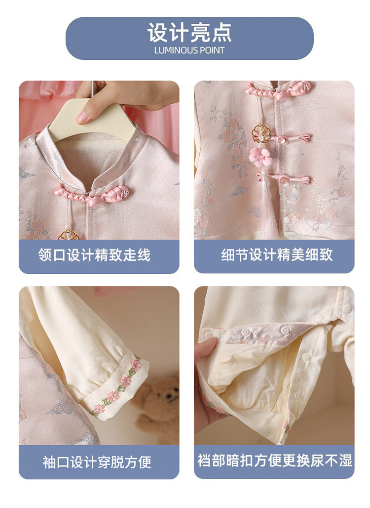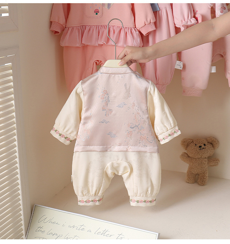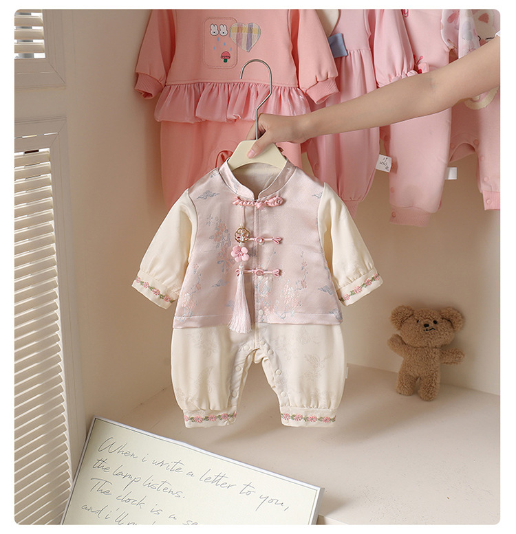 春秋新款婴儿衣服可爱女宝宝喜庆连体衣满月百天周岁公主唐装汉服
