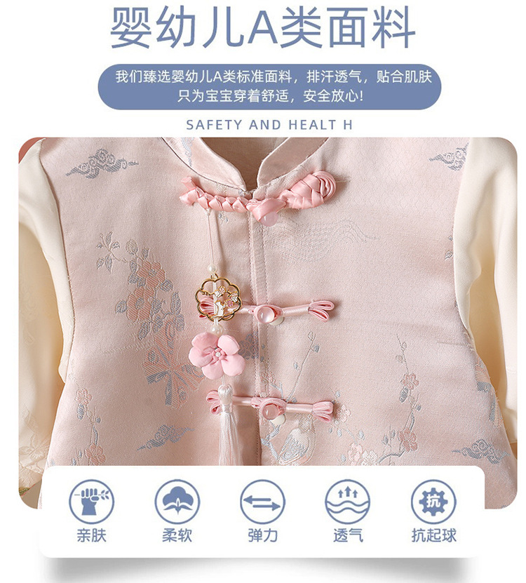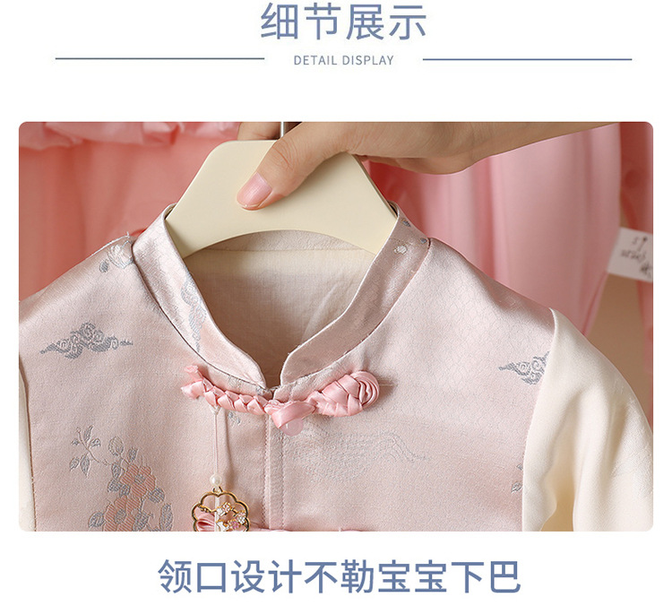 赤ちゃんの満1歳のドレスの春の新型の赤ちゃんの百日の満月の百日の中国式の連体の服は周服のピンクの国風をつかみます。