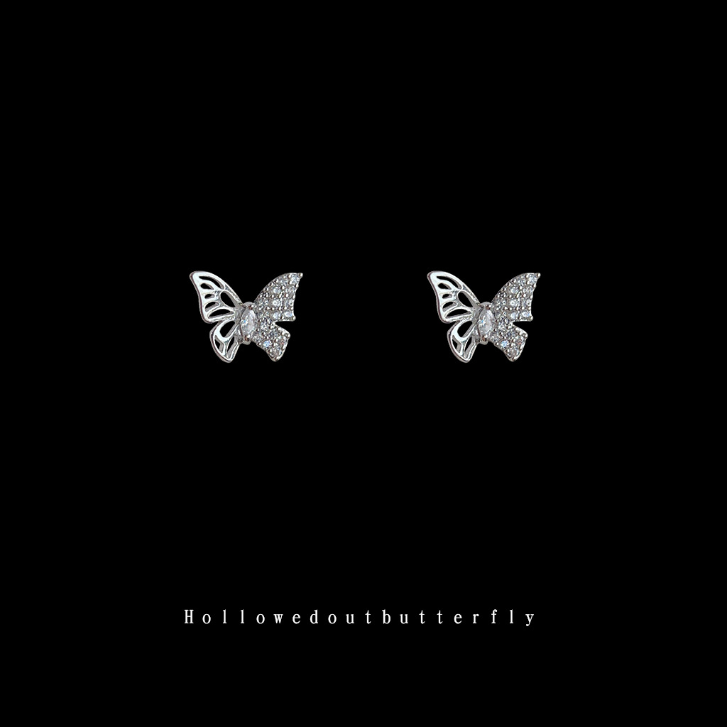 微镶锆石迷你蝴蝶耳钉925银针简约可爱小巧百搭耳饰通勤百搭饰品