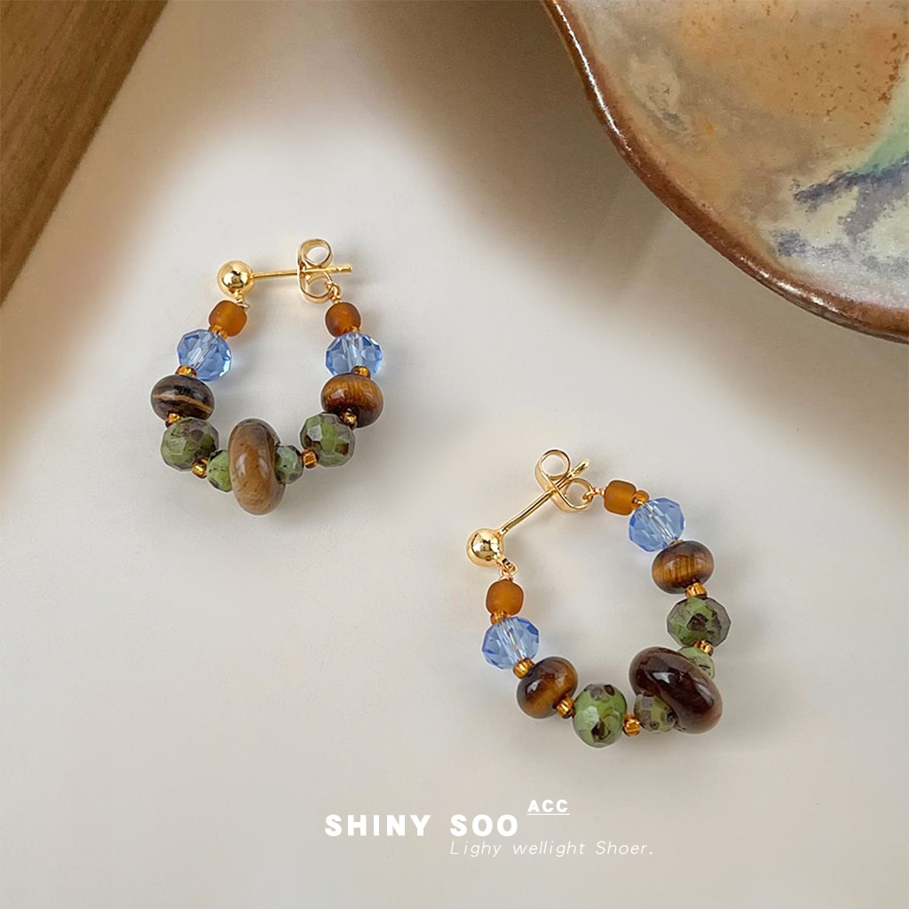 文艺复古民族风天然石虎眼石新款手工几何耳环气质民族风工厂耳饰