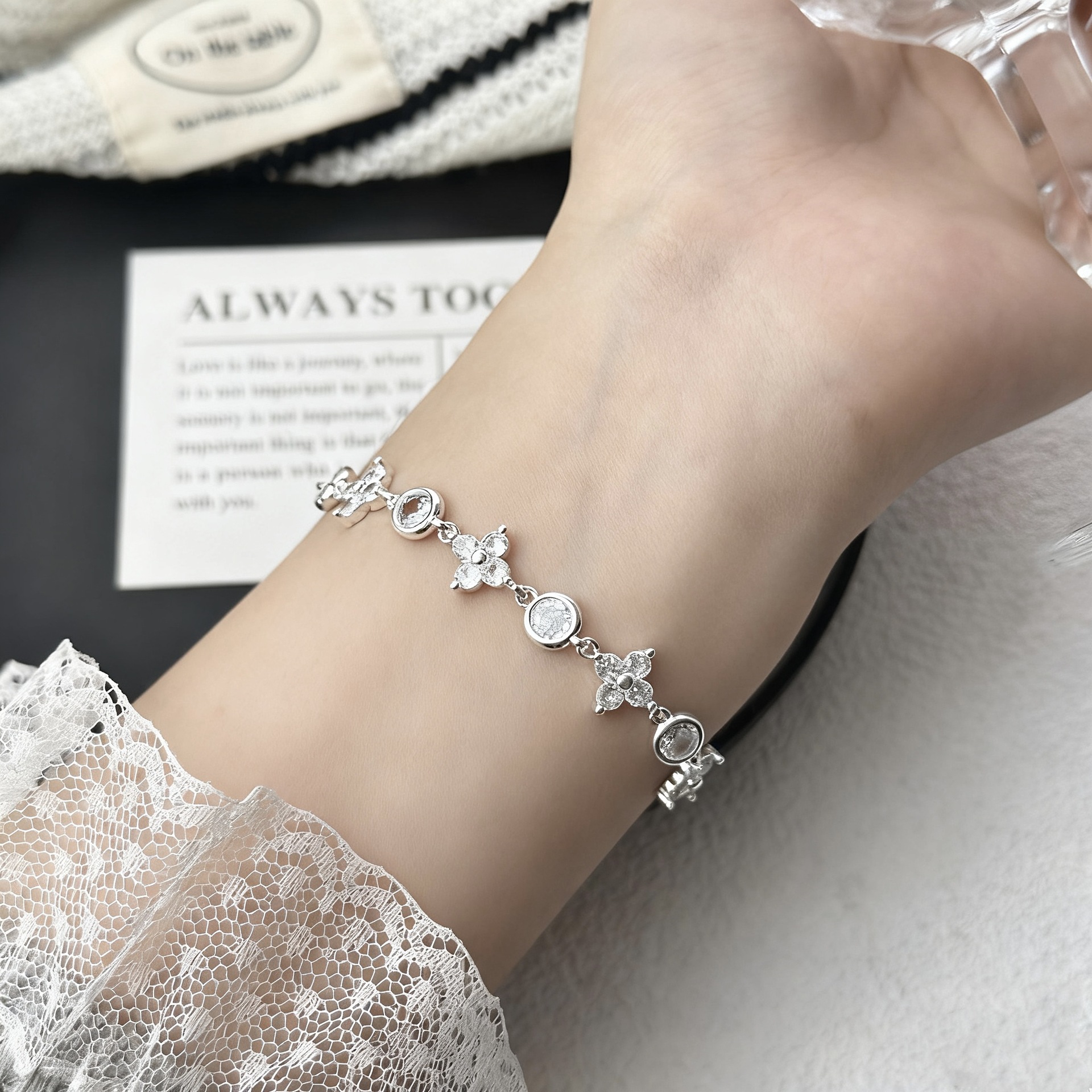 法式微镶锆石四叶花抽拉式手链女轻奢温柔高级感手串小众百搭手饰
