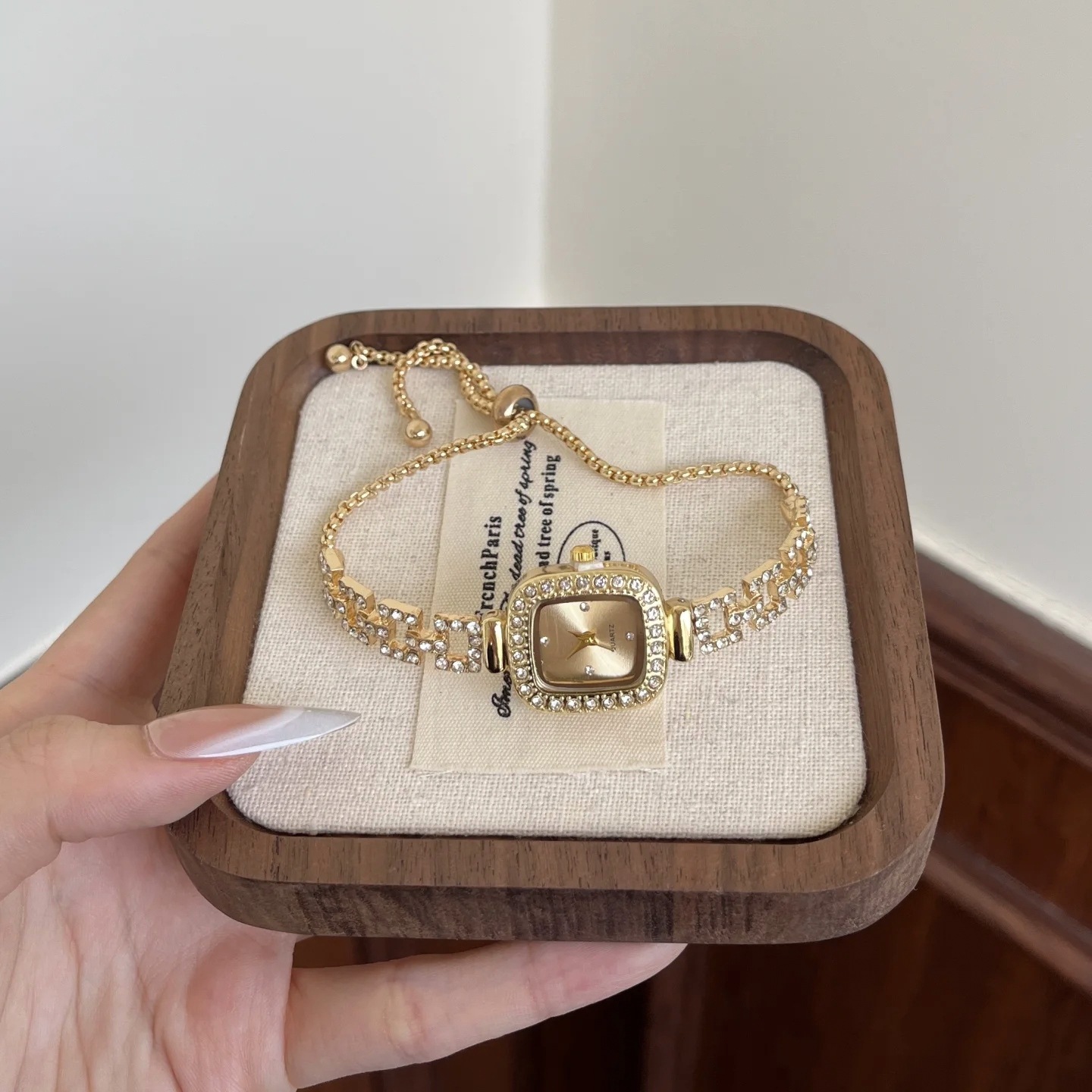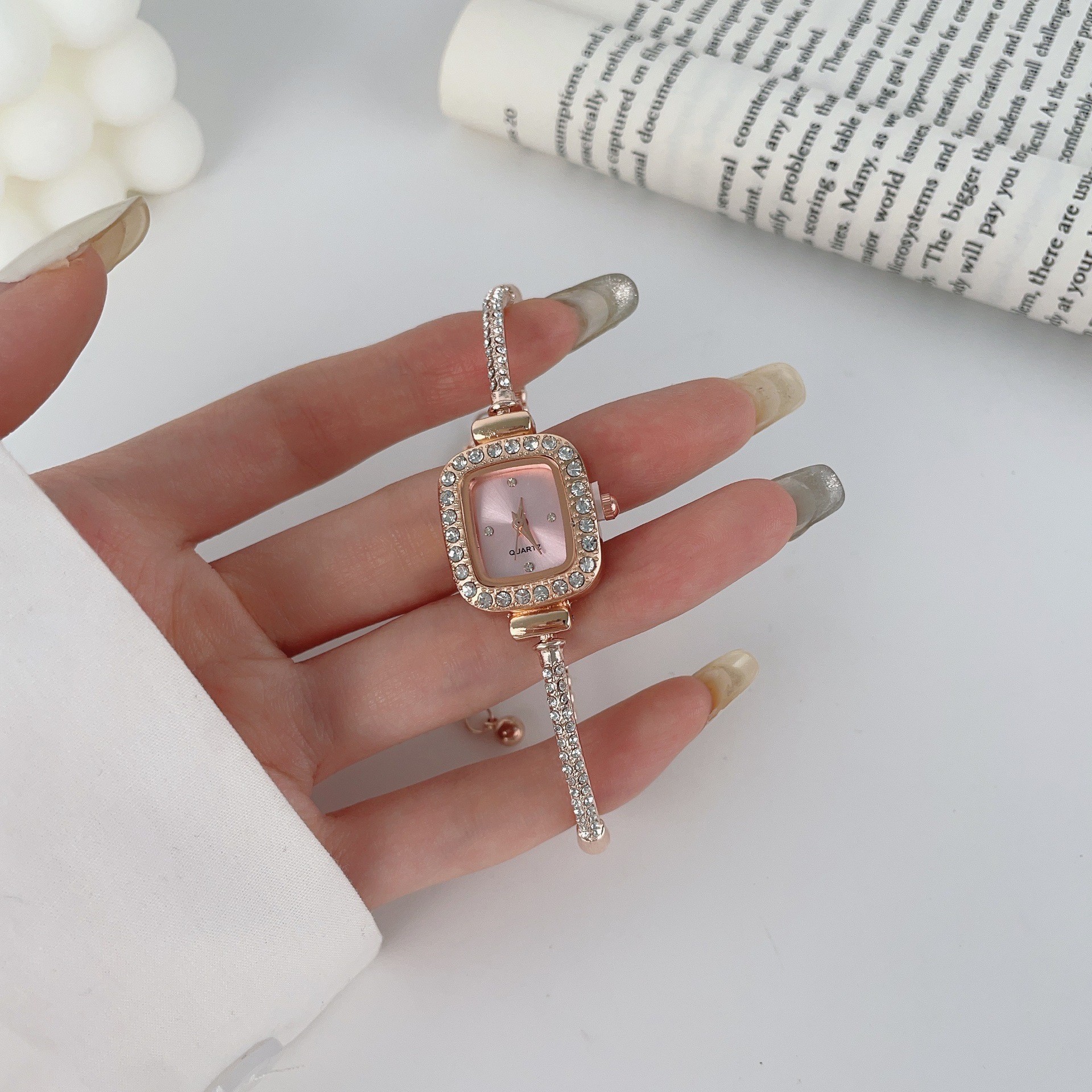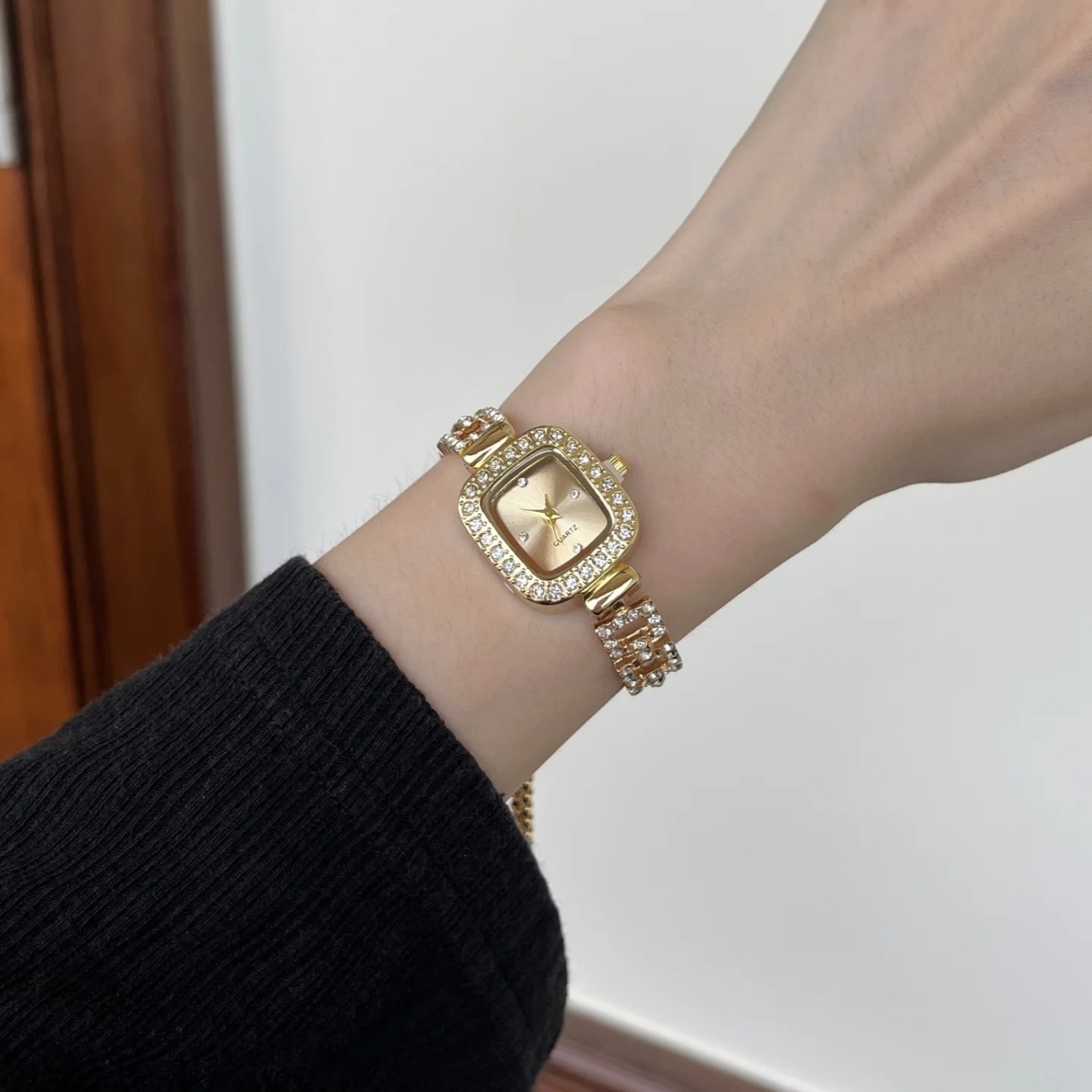 クロスボーダーの新しいスクエアダイヤル、ダイヤモンドがちりばめられたプルアウトブレスレット、軽い高級感、ハイエンドのファッション、絶妙なアクセサリー、ハンドアクセサリー