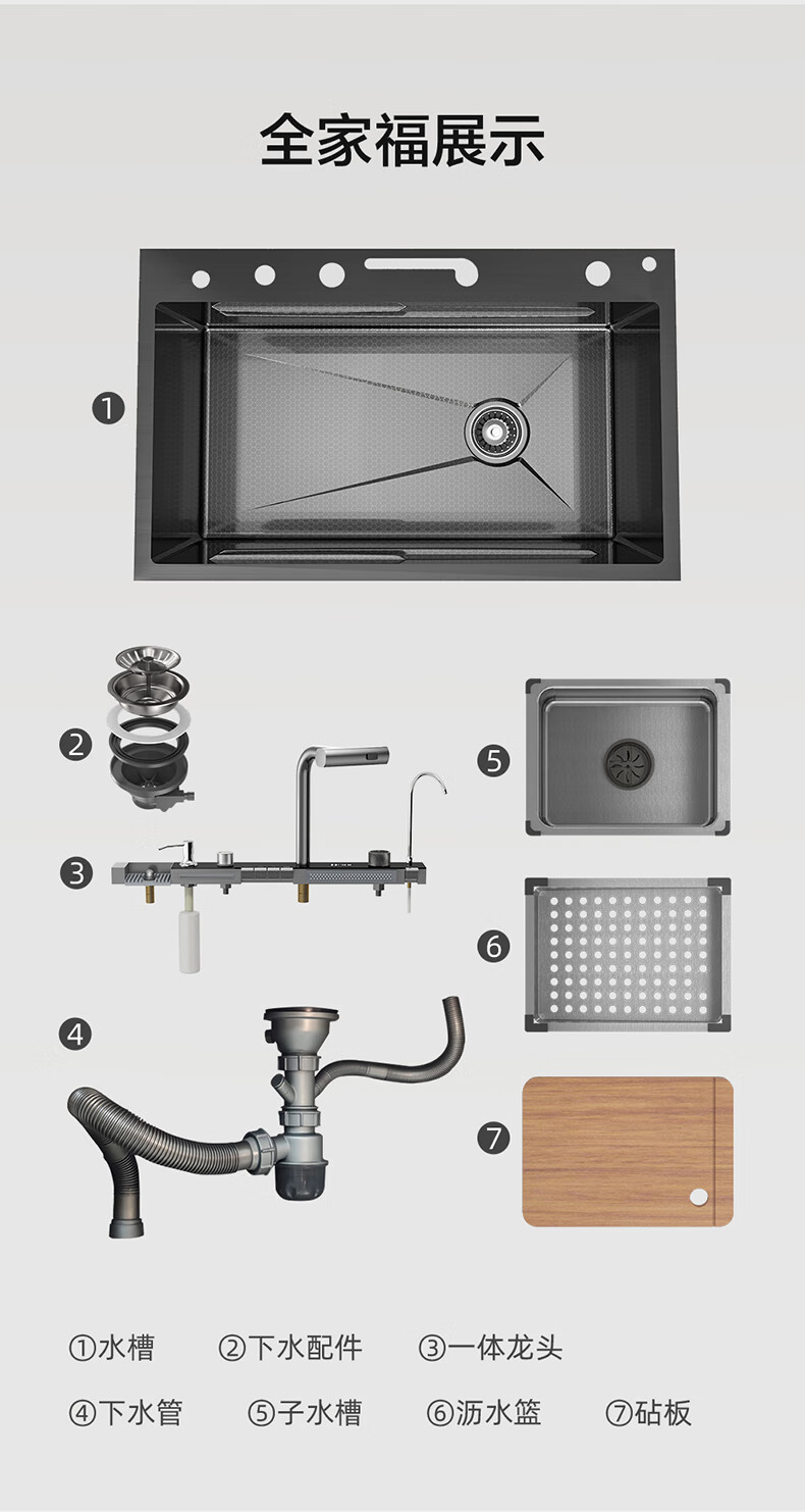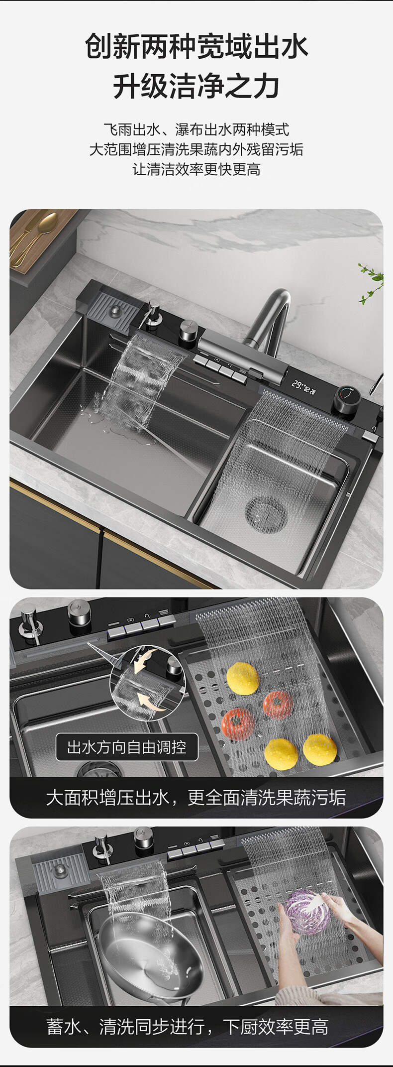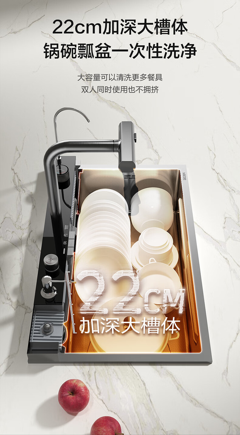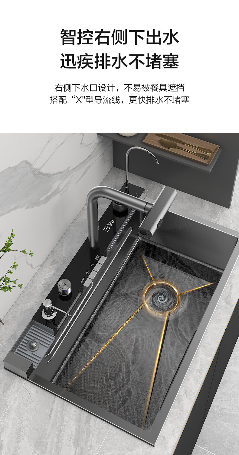 Four Seasons Muge キッチンシンク 大型シングルシンク 304 ステンレス鋼シンク レインフォール ウォーターフォール シンク