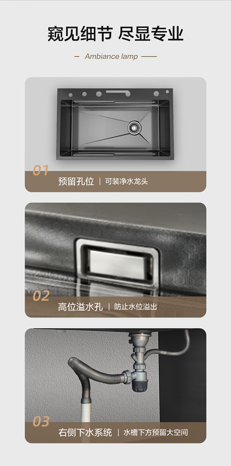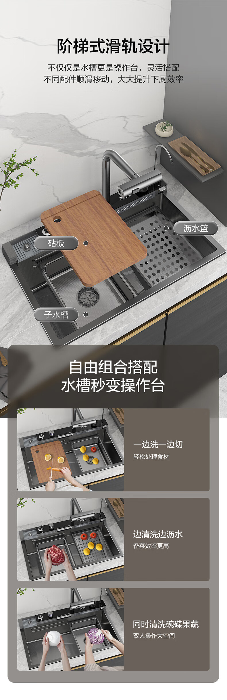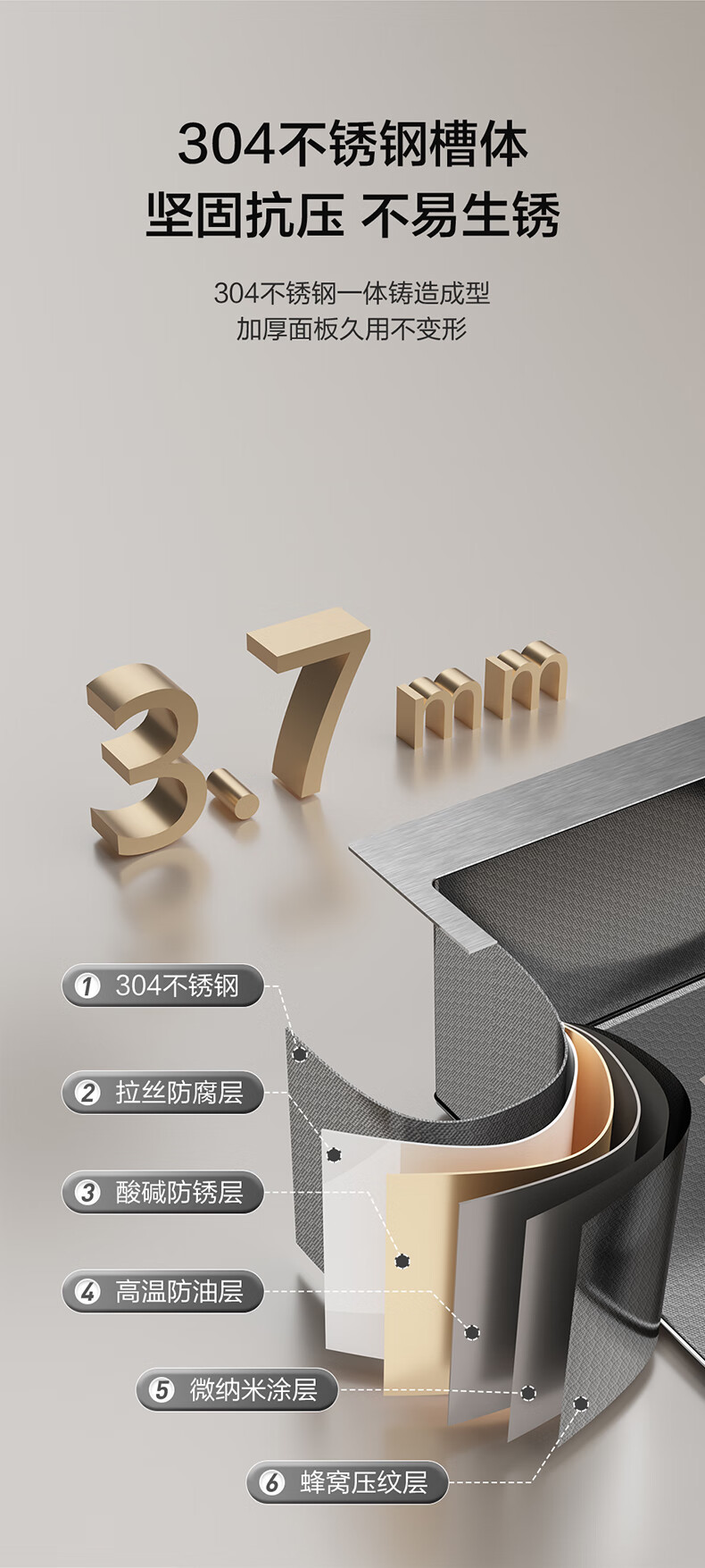 Four Seasons Muge キッチンシンク 大型シングルシンク 304 ステンレス鋼シンク レインフォール ウォーターフォール シンク