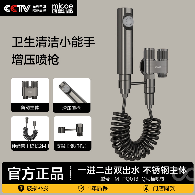 Four Seasons Muge ガングレー トイレコンパニオン 浴室高圧スプレーガン ウォッシュレット 1イン2アウト 三角バルブセット