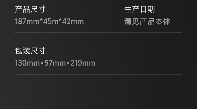产品尺寸 长187mm;宽45mm;高42mm