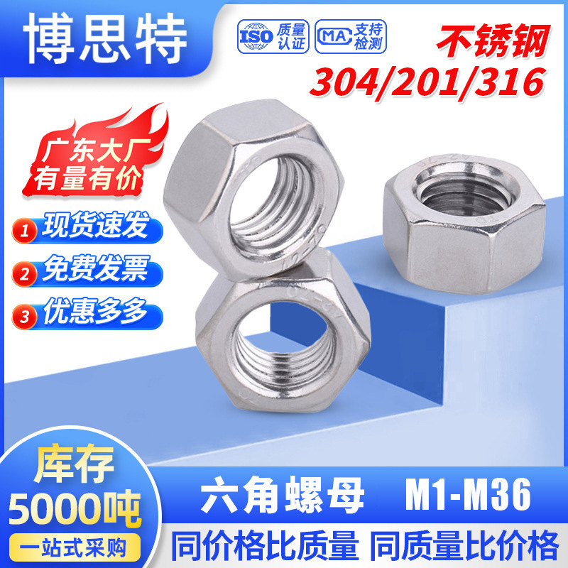 316/201/304ステンレス鋼ロック六角ナットM1.6-M24ネジキャップ六角ナット全集