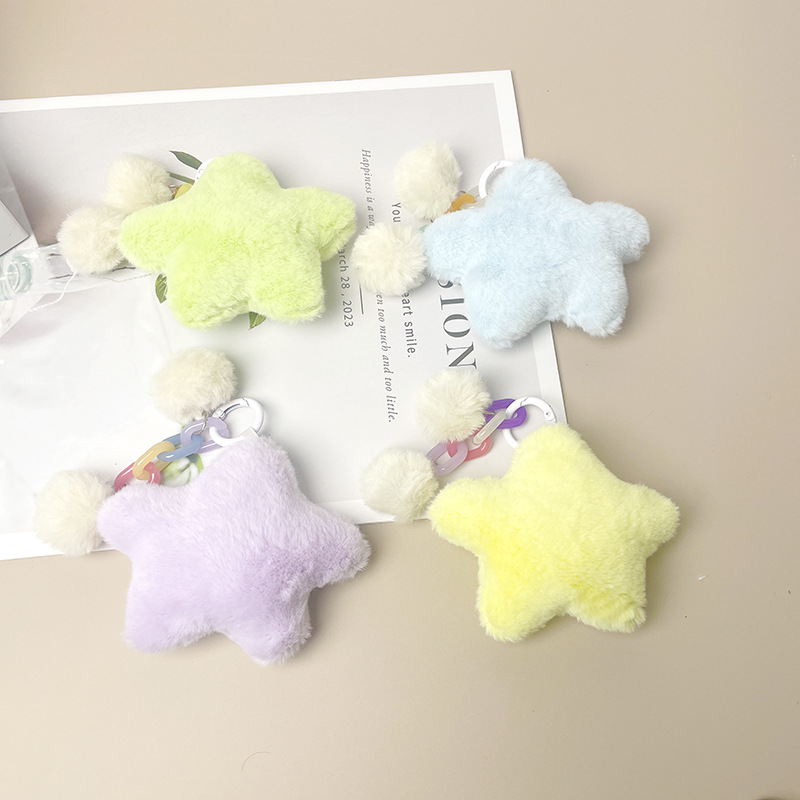 今年の新型虹のぬいぐるみのキーホルダーは五芒星のカラーの人形のdiy部品を掛けて贈り物を飾ります。