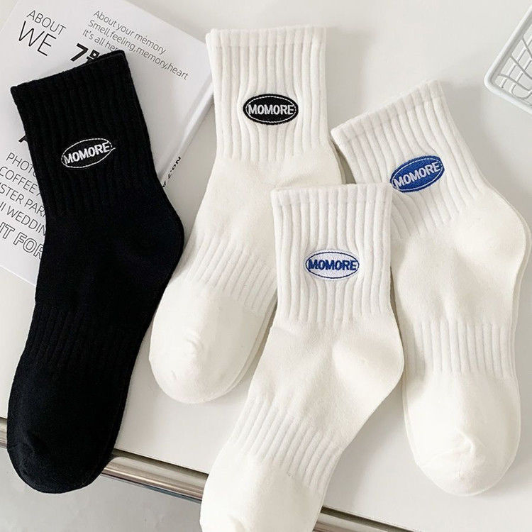 白色男士中筒吸汗防臭袜子秋冬款街头情侣四季中长筒运动短袜