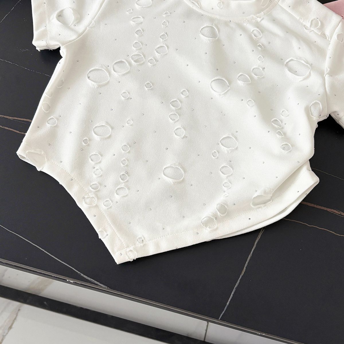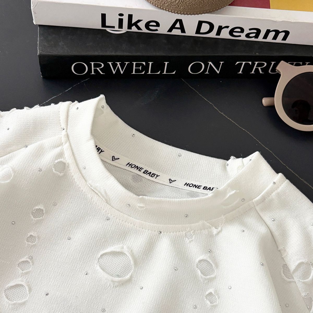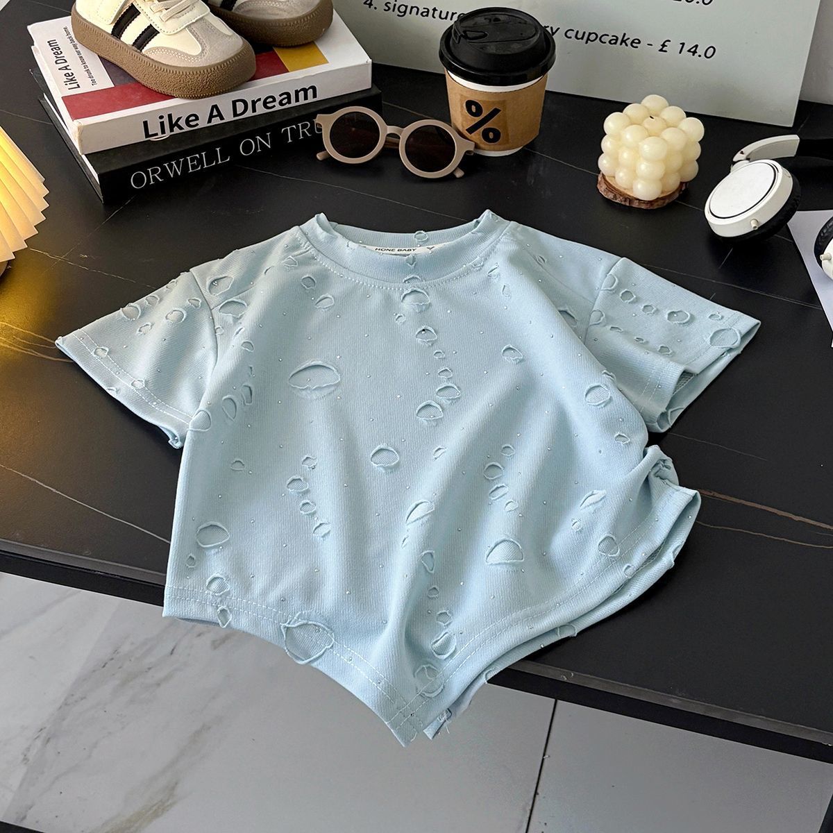 儿童夏季男女童2025新款半袖中大童破洞打底韩版洋气上衣短袖恤