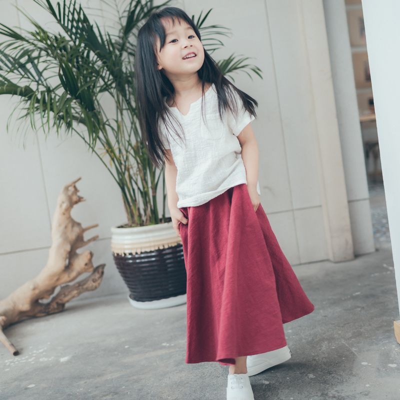 女の子スカート、文学Aラインスカート、ロングスカート、シンプルスタイル、夏のゆったり万能、爽やかレトロプリーツスカート