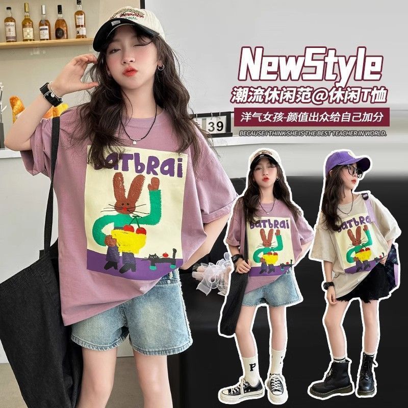 女の子半袖Tシャツ夏綿2025新しいスタイル子供夏服大きな子供用Tシャツトップスはトレンディでクールです