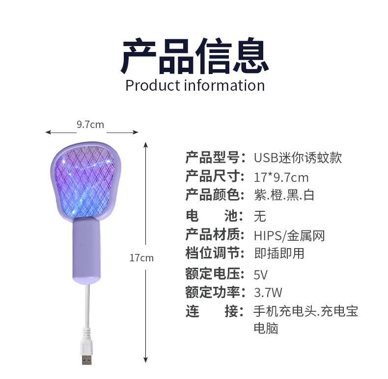 新型蚊取りusb充電式家庭用蚊取りハエ取り家庭用作業表示灯付きライト大網