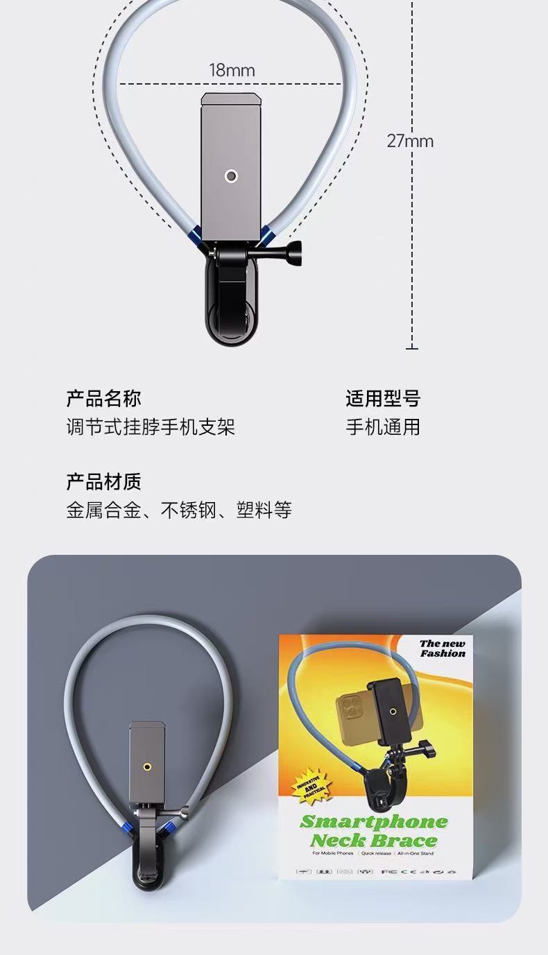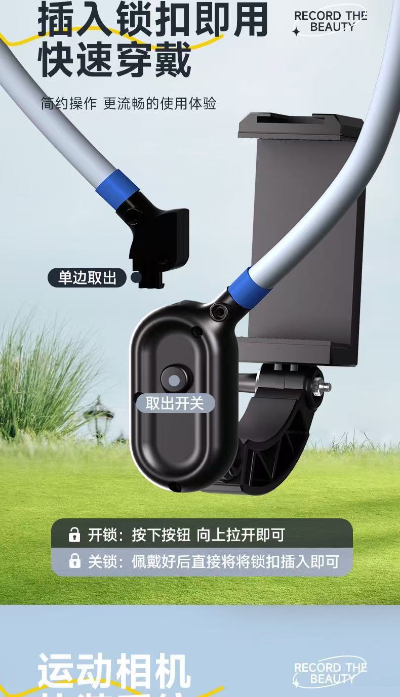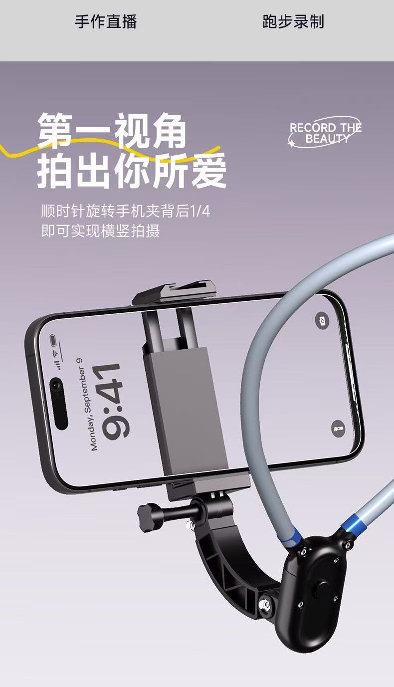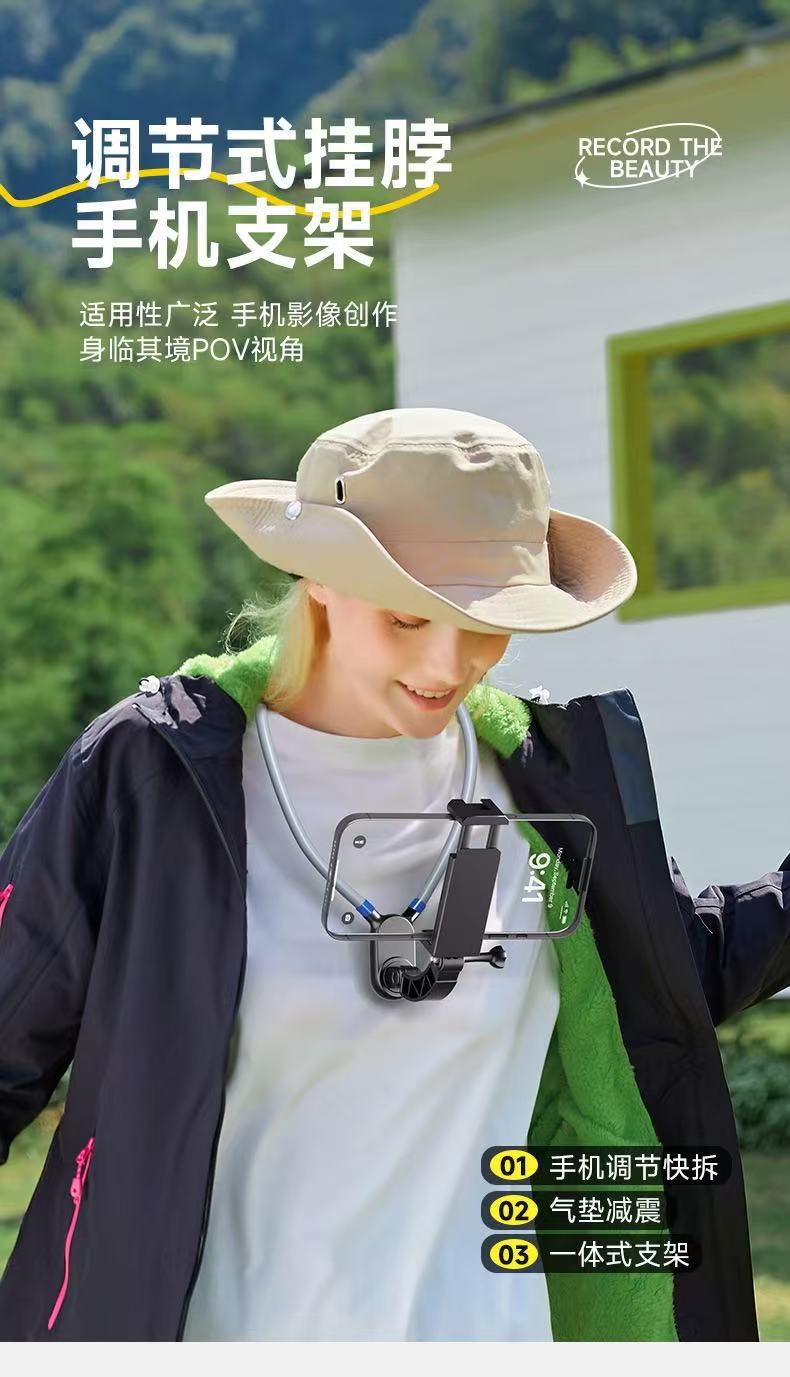 挂脖手机支架第一人称视角拍摄设备户外直播专用挂脖支架防抖神器