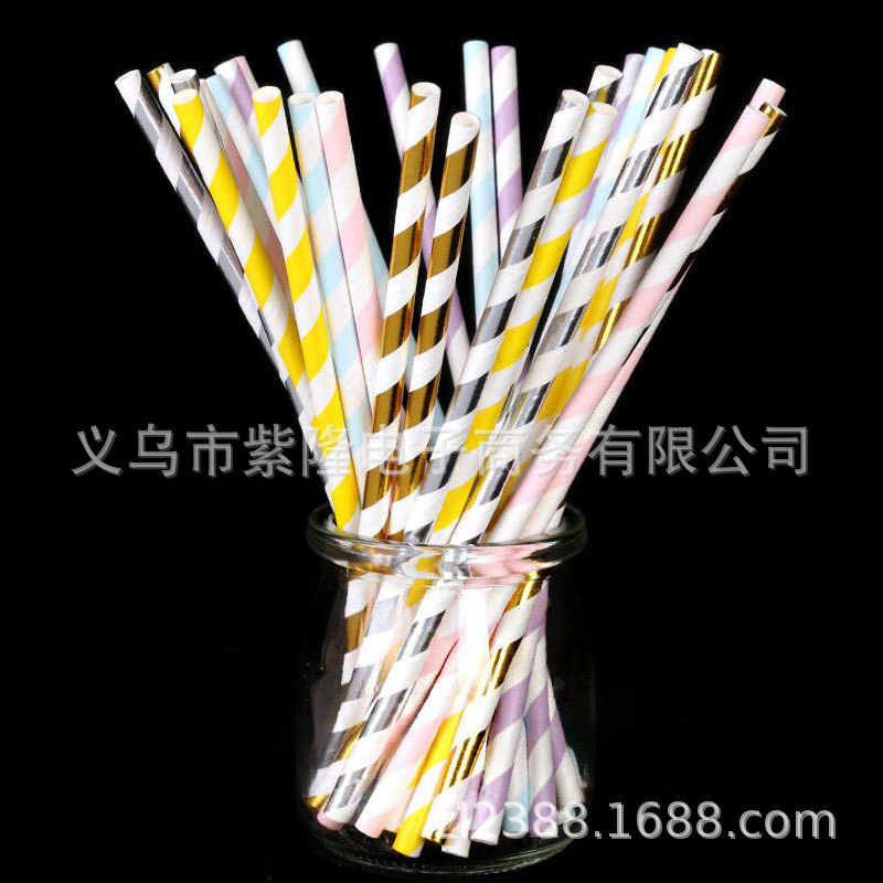 25 個の使い捨て分解性ストライプ紙ストロー色紙ストロー飲料誕生日パーティー装飾用品