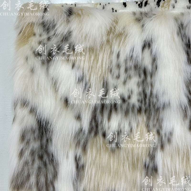 人造皮草外套 ZW系列 米色斑点提花小豹猫 长毛绒 小野猫网红外套