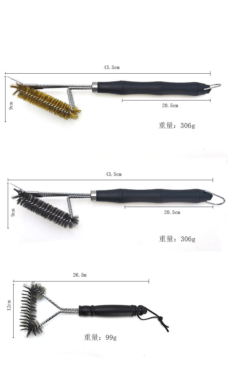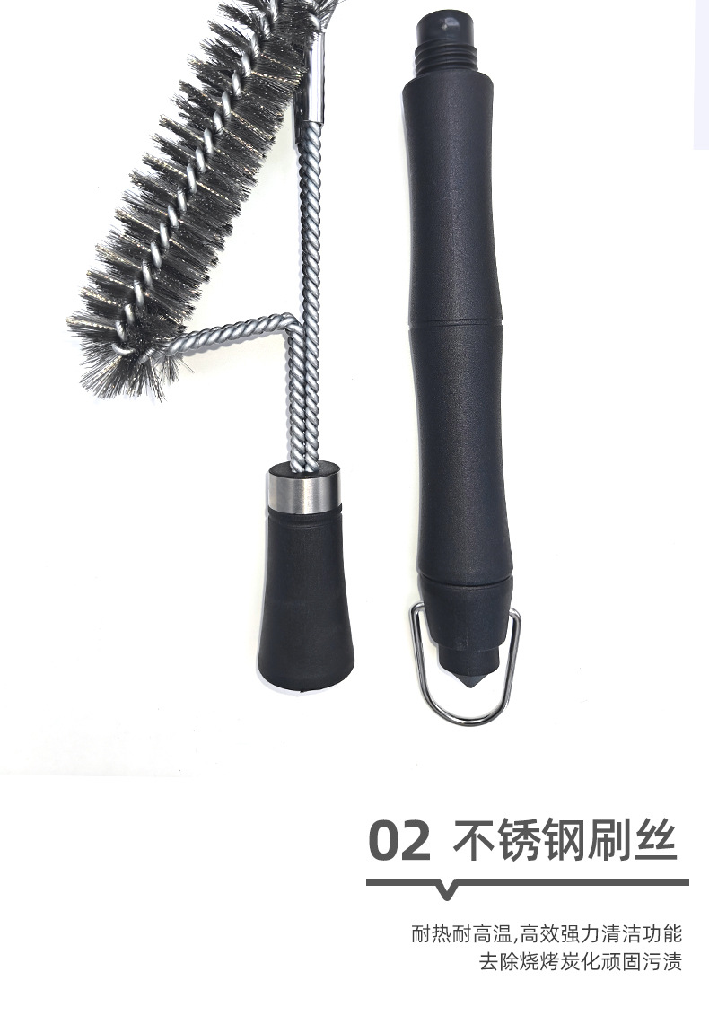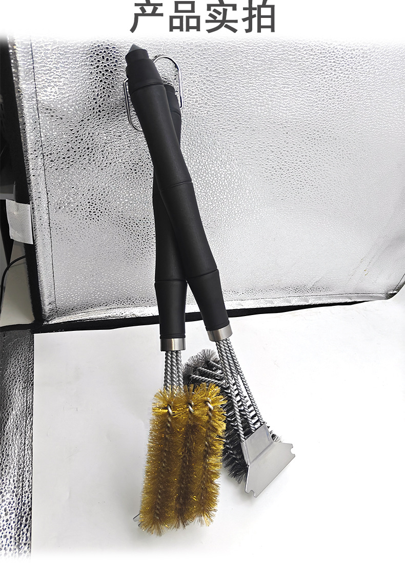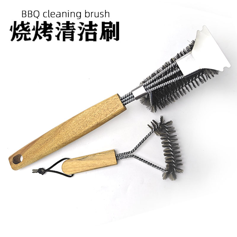 跨境烧烤刷清洁刷不锈钢钢丝刷油刷烧烤架烤炉烤网清洁三头带刮刀