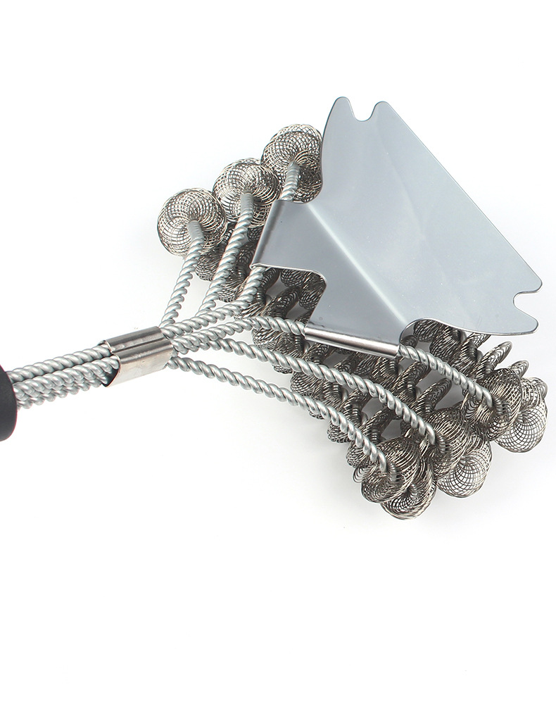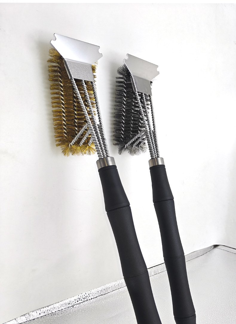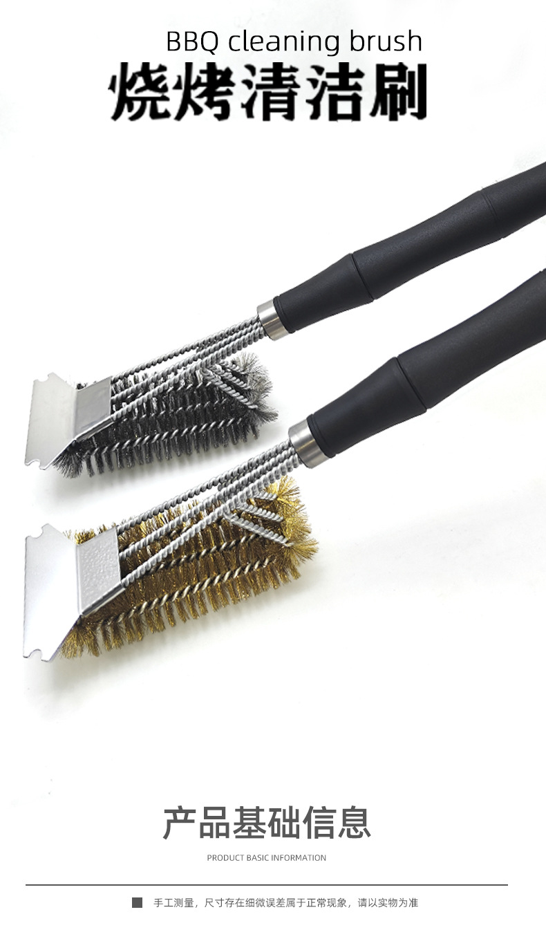 跨境烧烤刷清洁刷不锈钢钢丝刷油刷烧烤架烤炉烤网清洁三头带刮刀