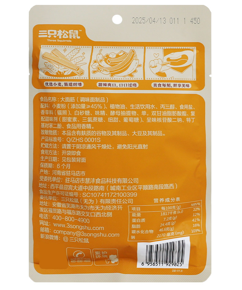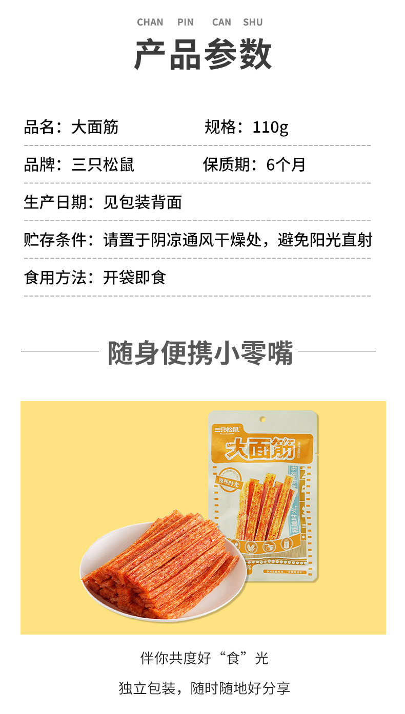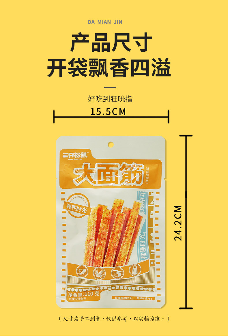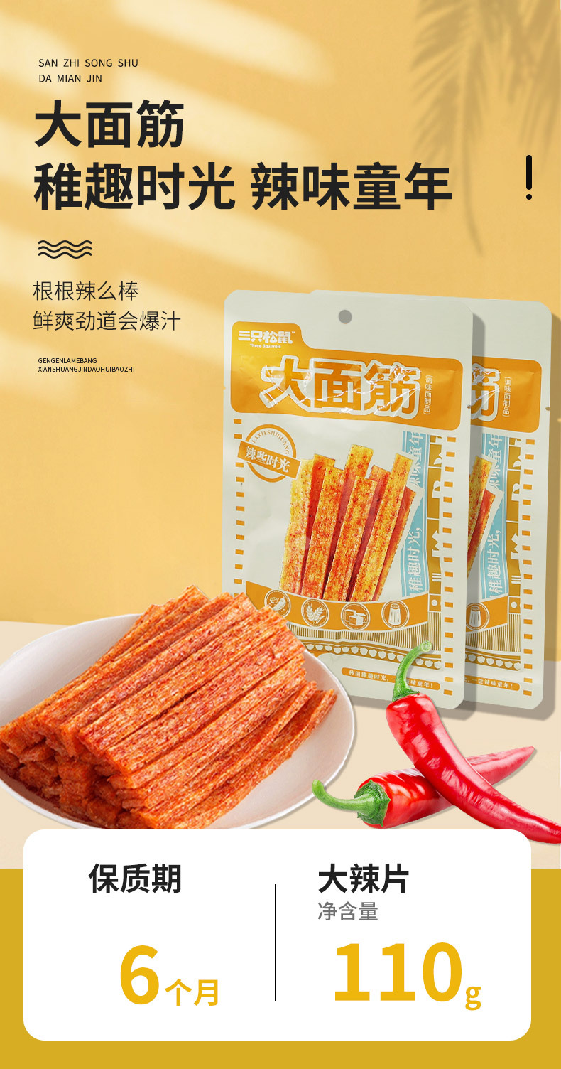 批发三只松鼠大面筋110g新鲜怀旧解馋小吃直尺辣条休闲零食包邮