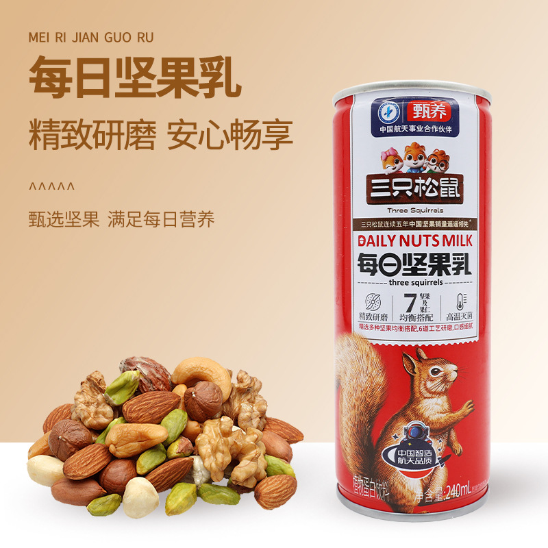 批发三只松鼠坚果乳240ml新鲜7种坚果仁植物蛋白饮料便携听装包邮