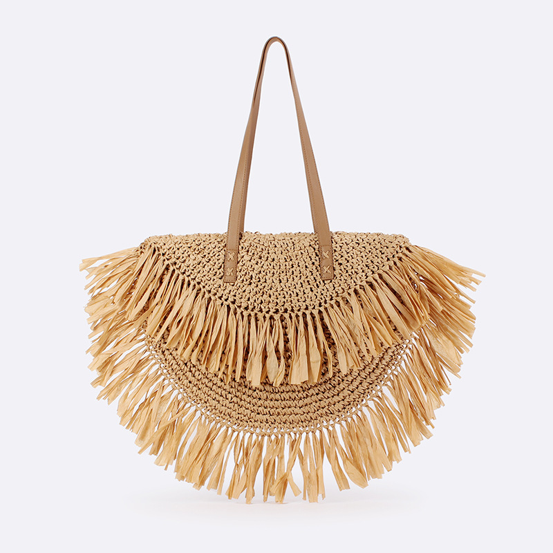 2024年新作草編みバッグ小清新女性ショルダーバッグ大容量編みバッグ女性コンビネーションシンプルビーチバッグ