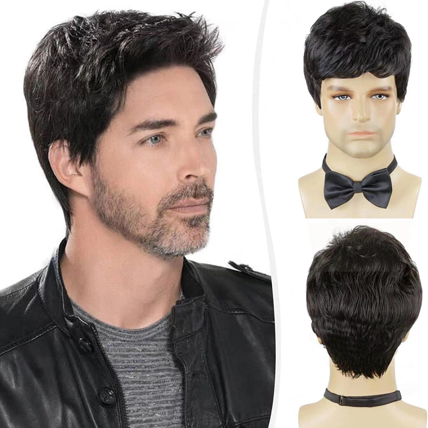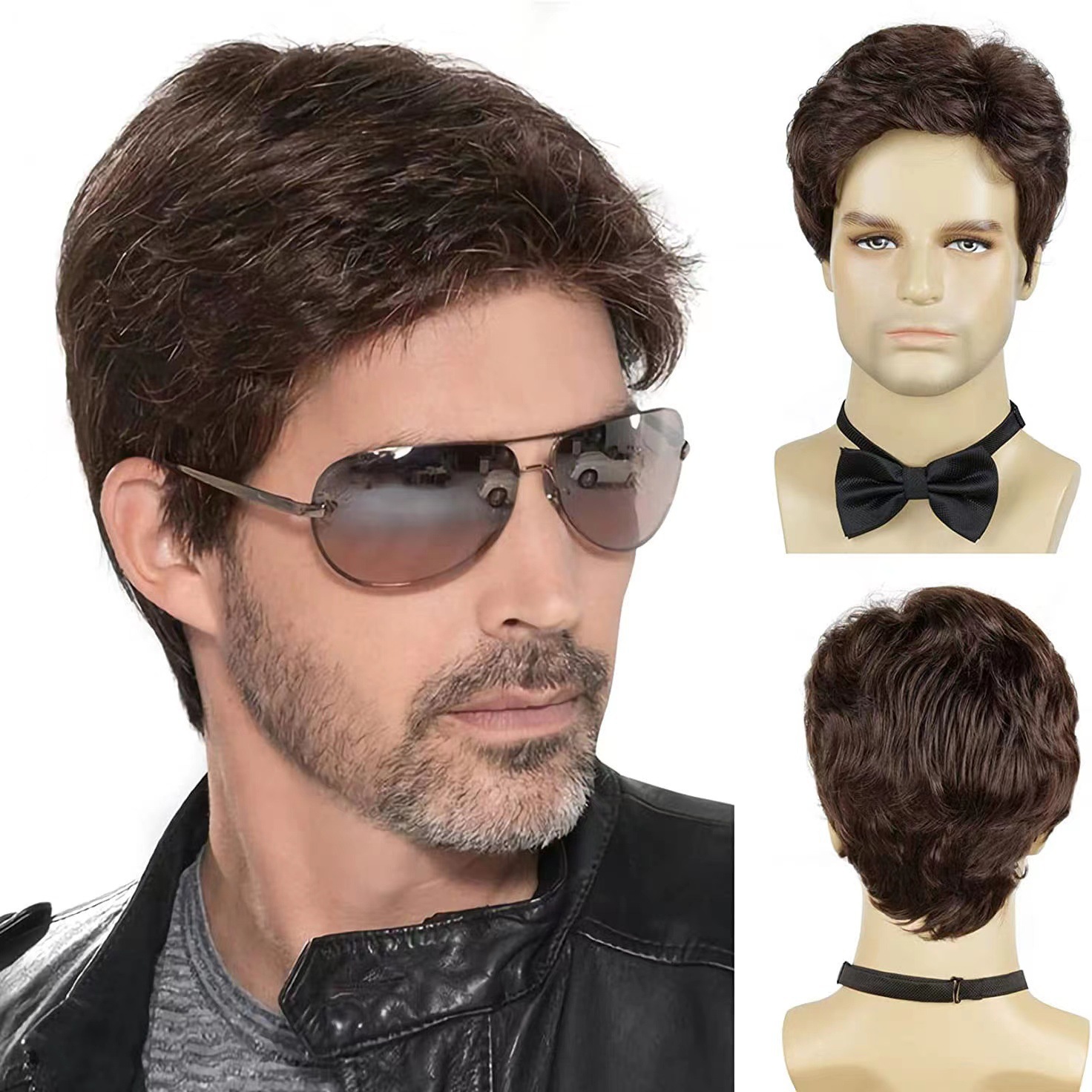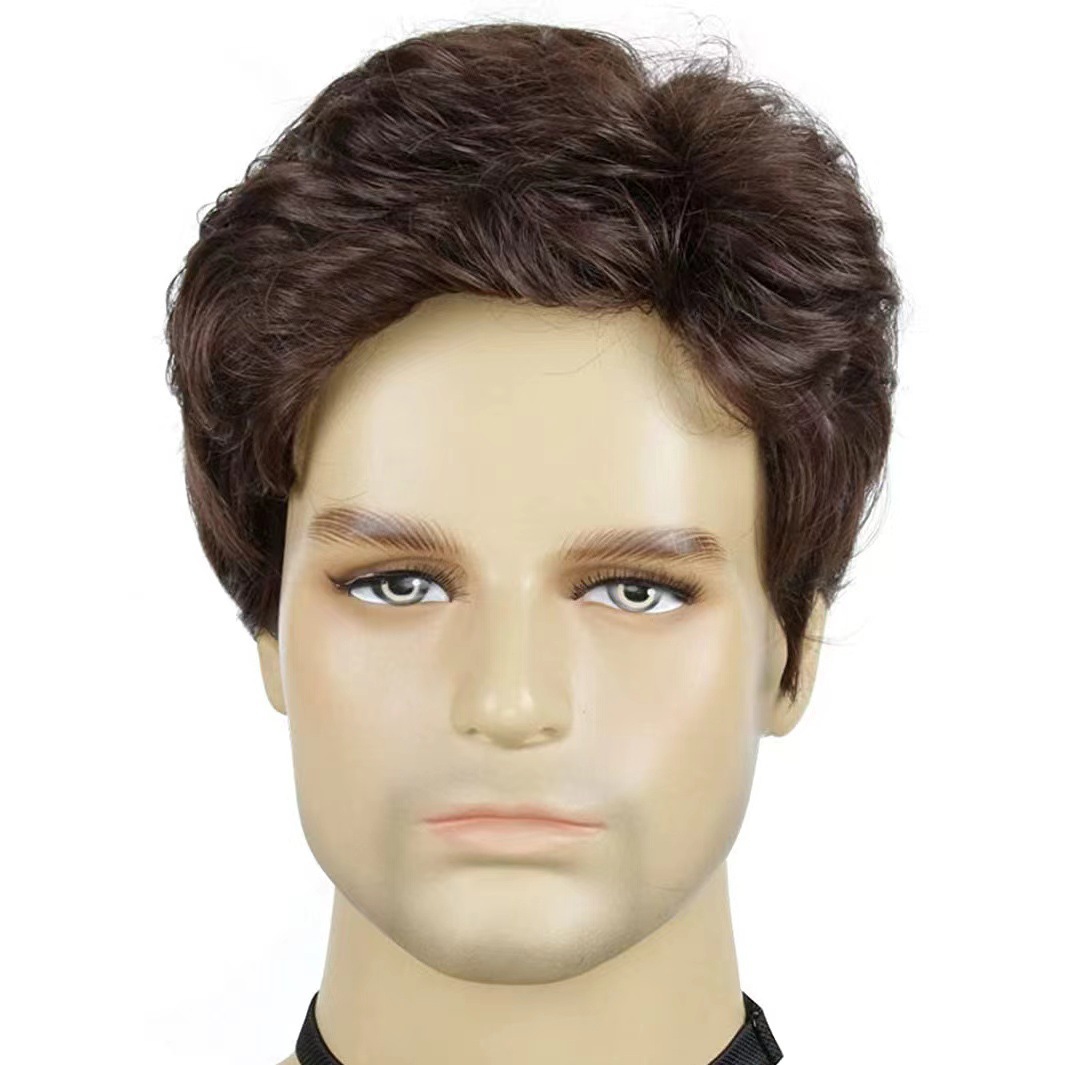 跨境热卖男士时尚中年假发 蓬松短卷发 耐热高温丝化纤全头套