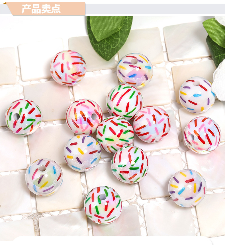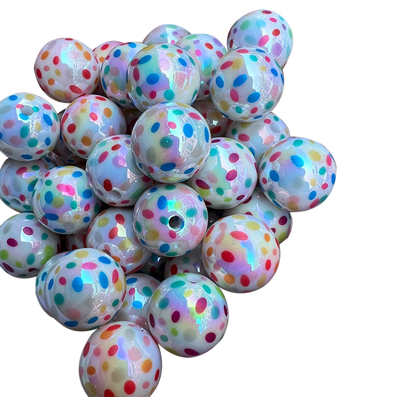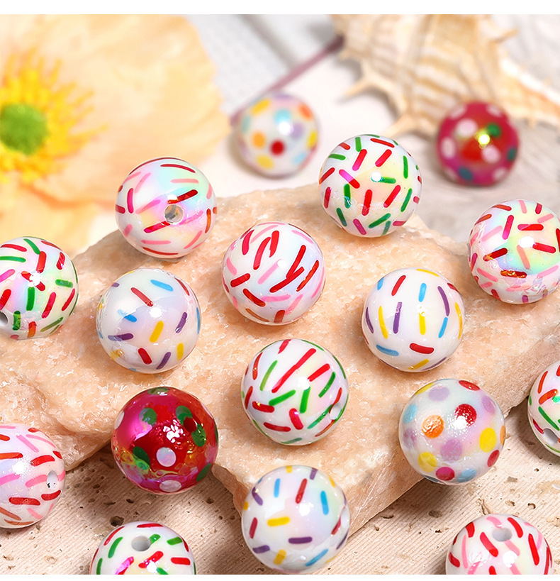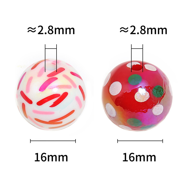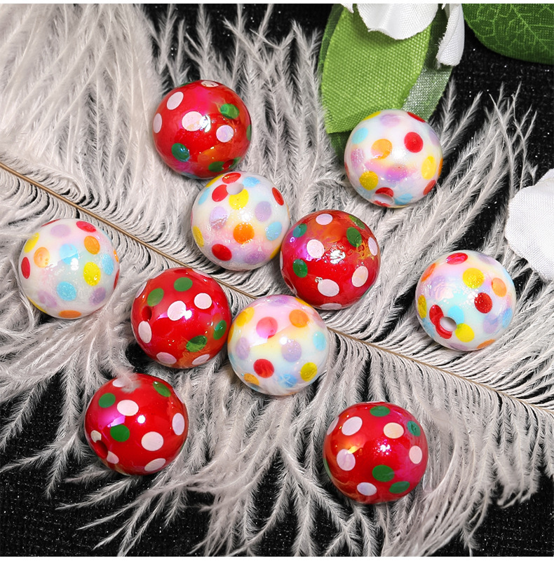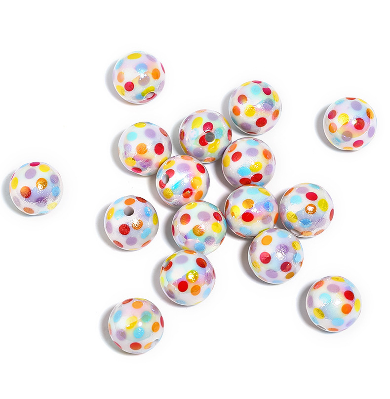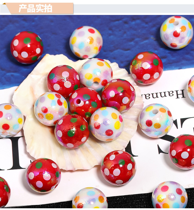亚克力UV圆珠波点印花珠彩色16MM直播diy串珠笔手机绳钥匙扣配件